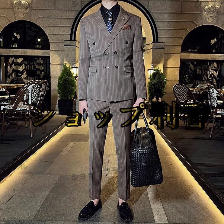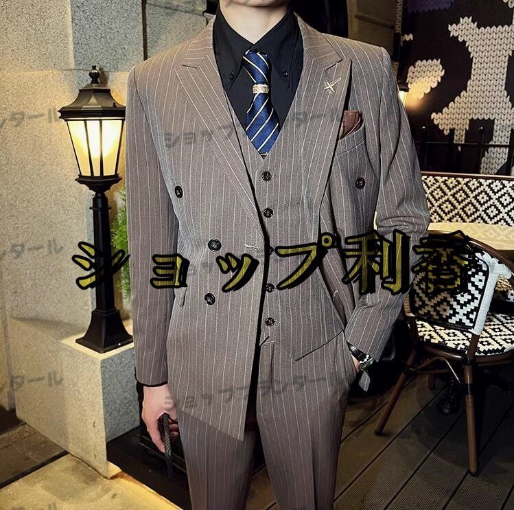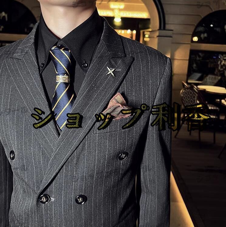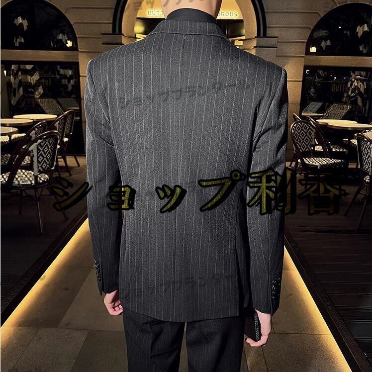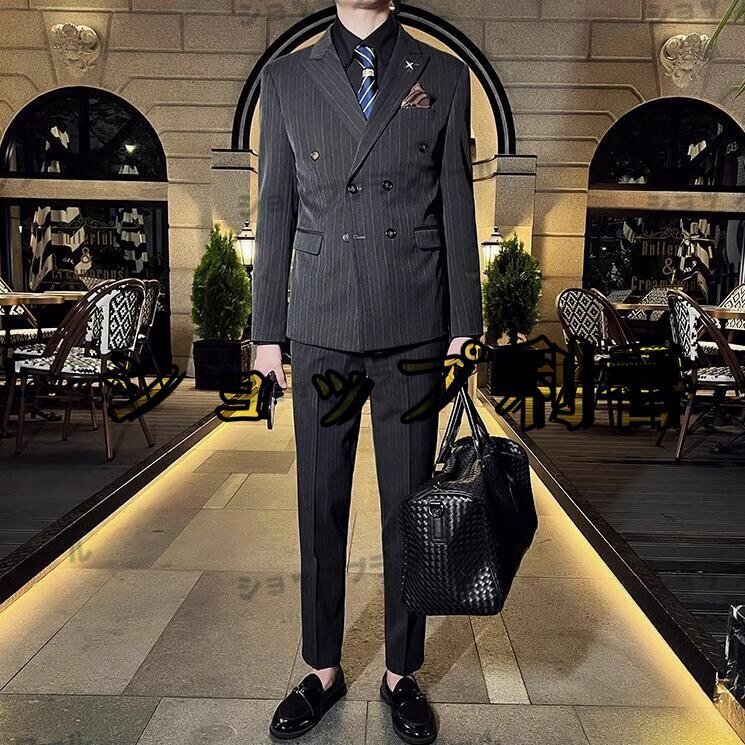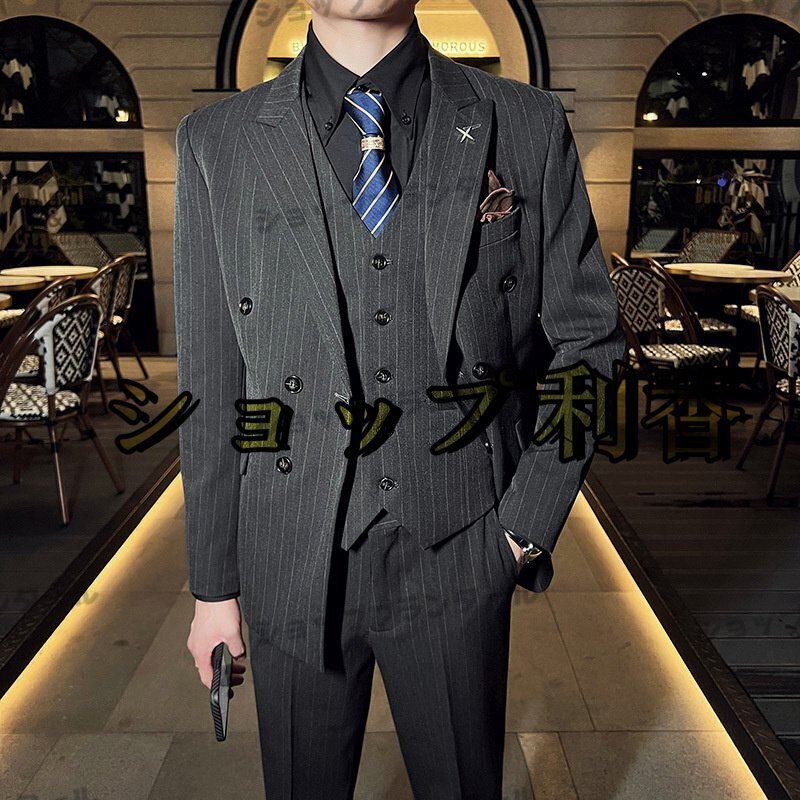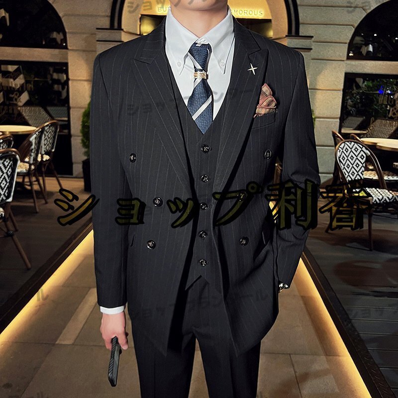 極美品 スリーピース ダブルスーツ ストライブ柄 シングルスーツ メンズスーツ スタイリッシュ スリム 結婚式 背広 二つボタン 黒色 M~5XL