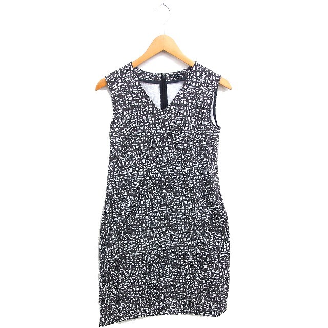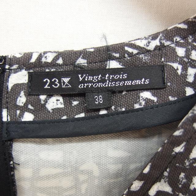 23区 オンワード樫山 ワンピース ミモレ丈 ロング Aライン 総柄 Vネック ノースリーブ 38 チャコールグレー /TT レディース