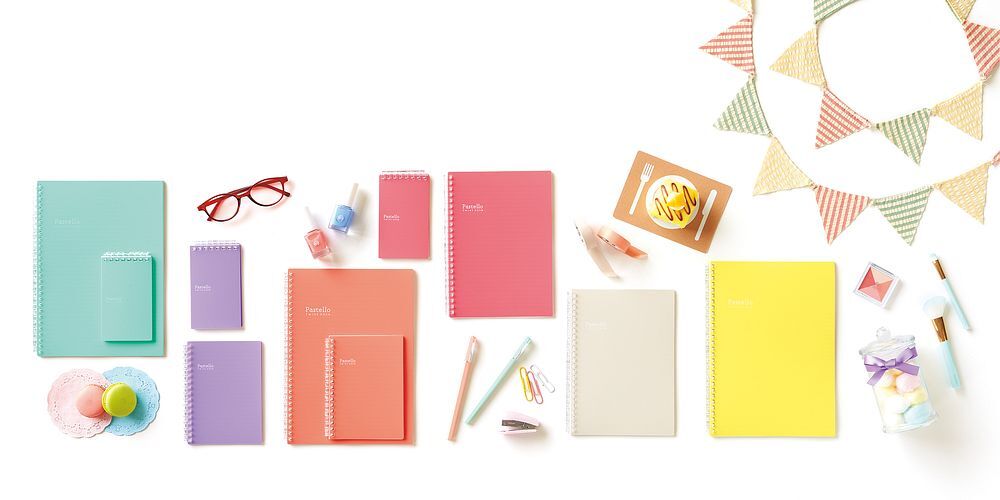『Pastelloツイストノート』は、学生から働く女性まで幅広い層の方にお使い頂けるやさしいパステルカラーで、コスメなどお気に入りのアイテムを選ぶように使うシーンをイメージして楽しく選んで頂ける豊富なサイズ・色展開です。