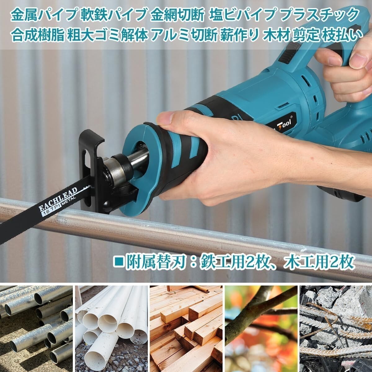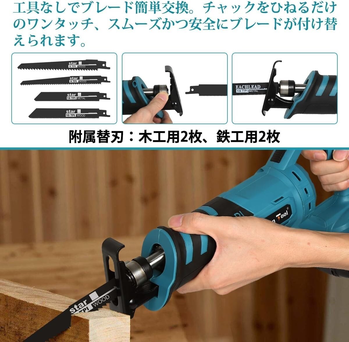 【国内発送】★充電式レシプロソー 青 収納ケース 替刃4本付き ATRS01B 電気のこぎり マキタ互換 マキタ 18V BL1830 BL1860 など 領収証可