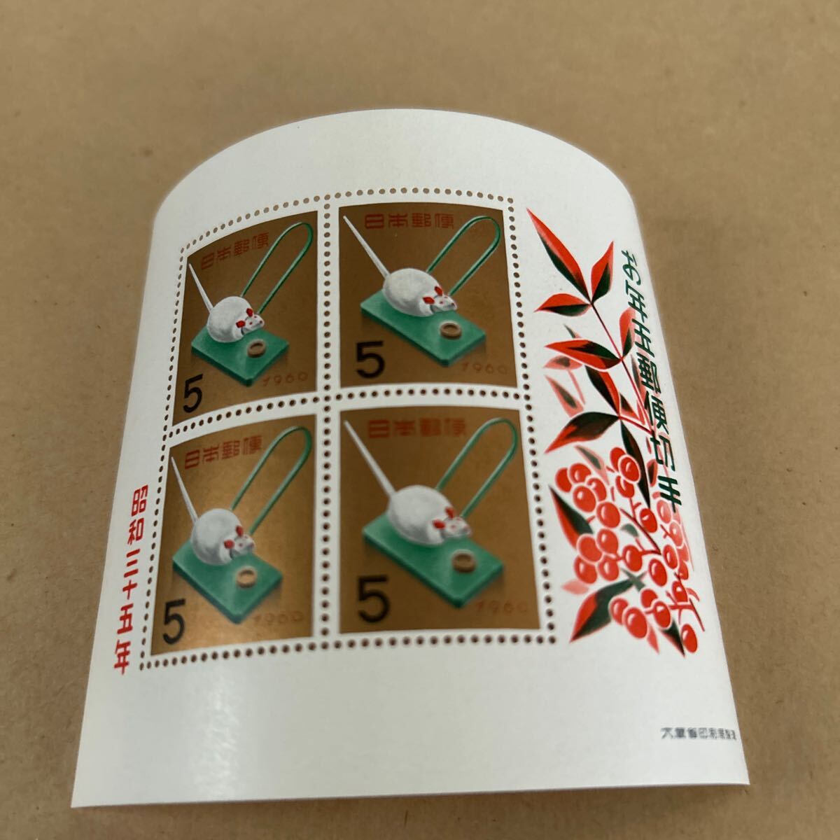未使用の昭和35年の年賀切手米くいねずみの小型シートです。古いもののわりに綺麗かと思いますが自宅保管の為細かなところが気になる方はご遠慮ください。