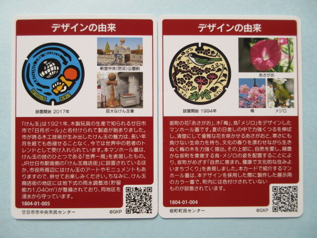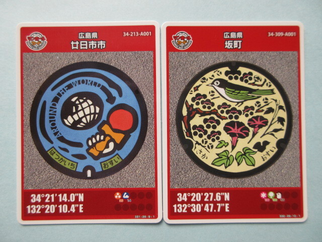 ★マンホールカード★ 広島県 2枚セット 廿日市市(けん玉)+ 坂町(メジロ) 送料¥85~ 4枚まで同梱発送可