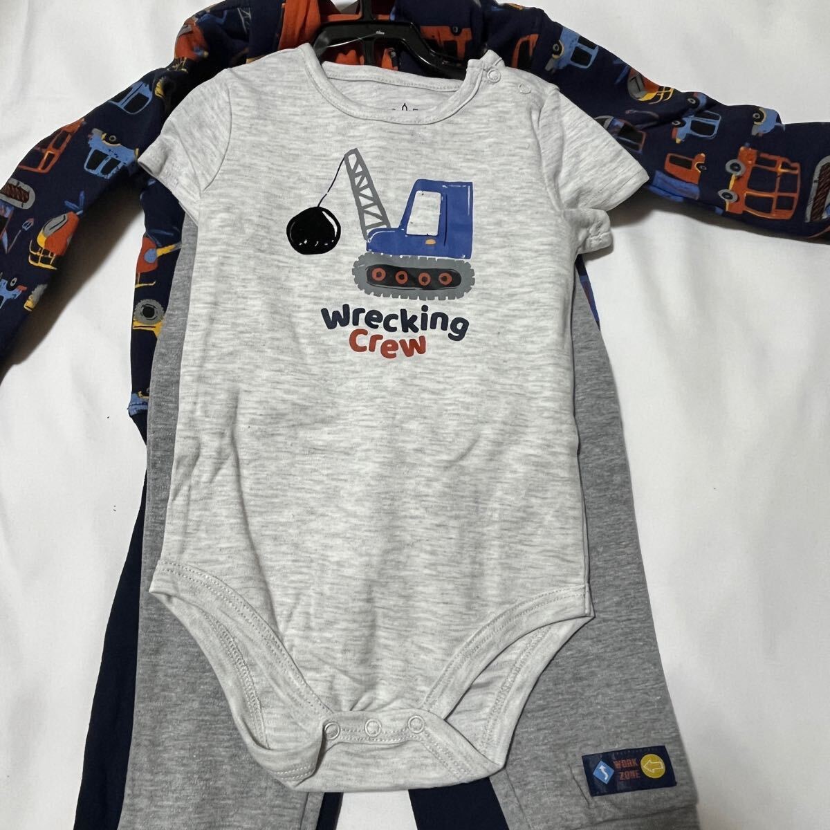 長袖パーカー、半袖ロンパース、ロングパンツ2点