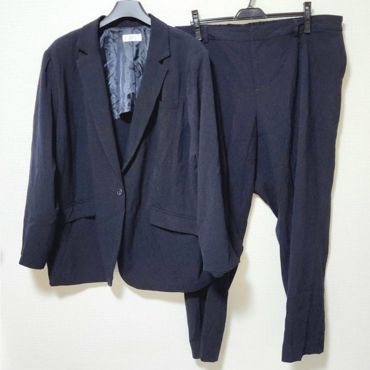 オーソドックスなテーラードジャケットとテーパードパンツの上下2点セットです