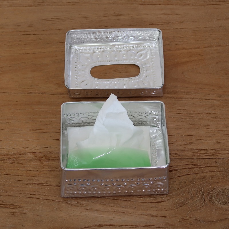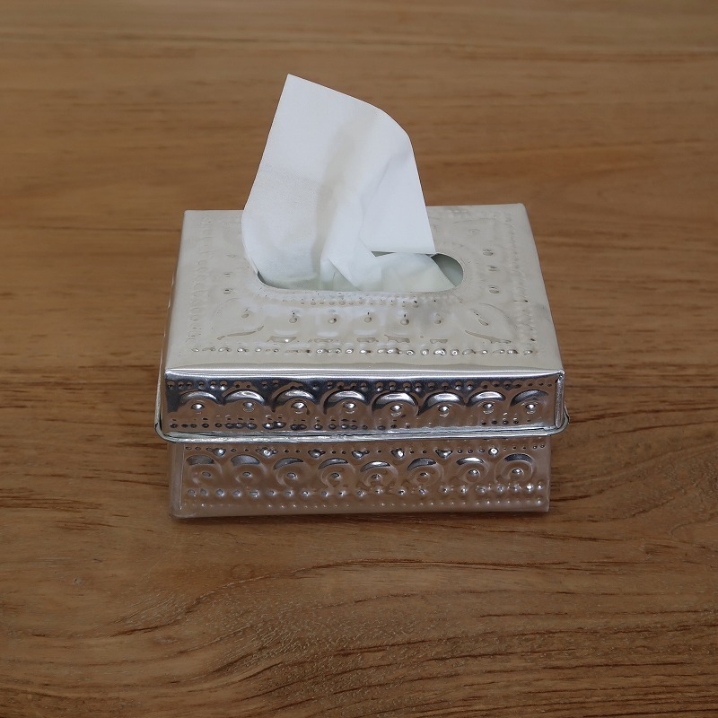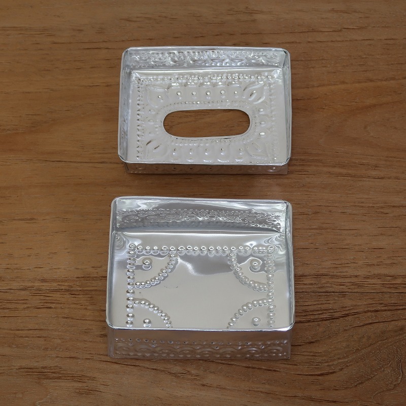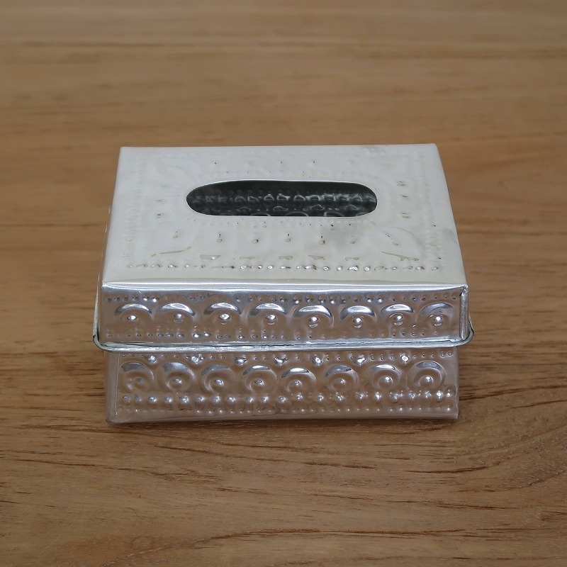 薄いアルミに型押ししたアジアンな雰囲気のティッシュケースです。ポケットティッシュもオシャレに収納できます。