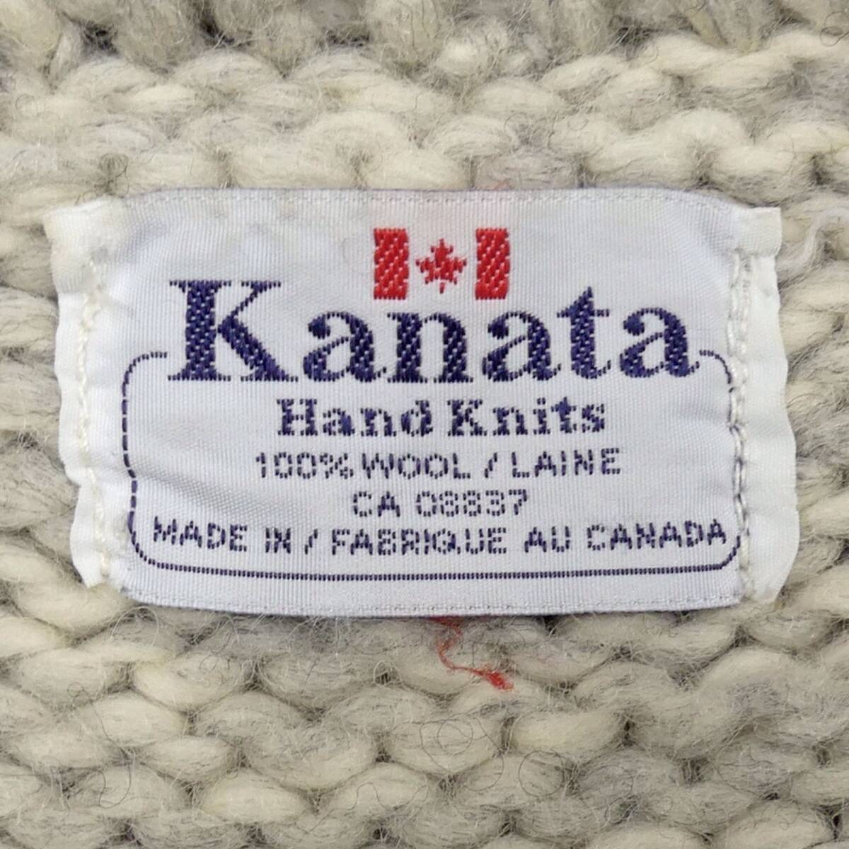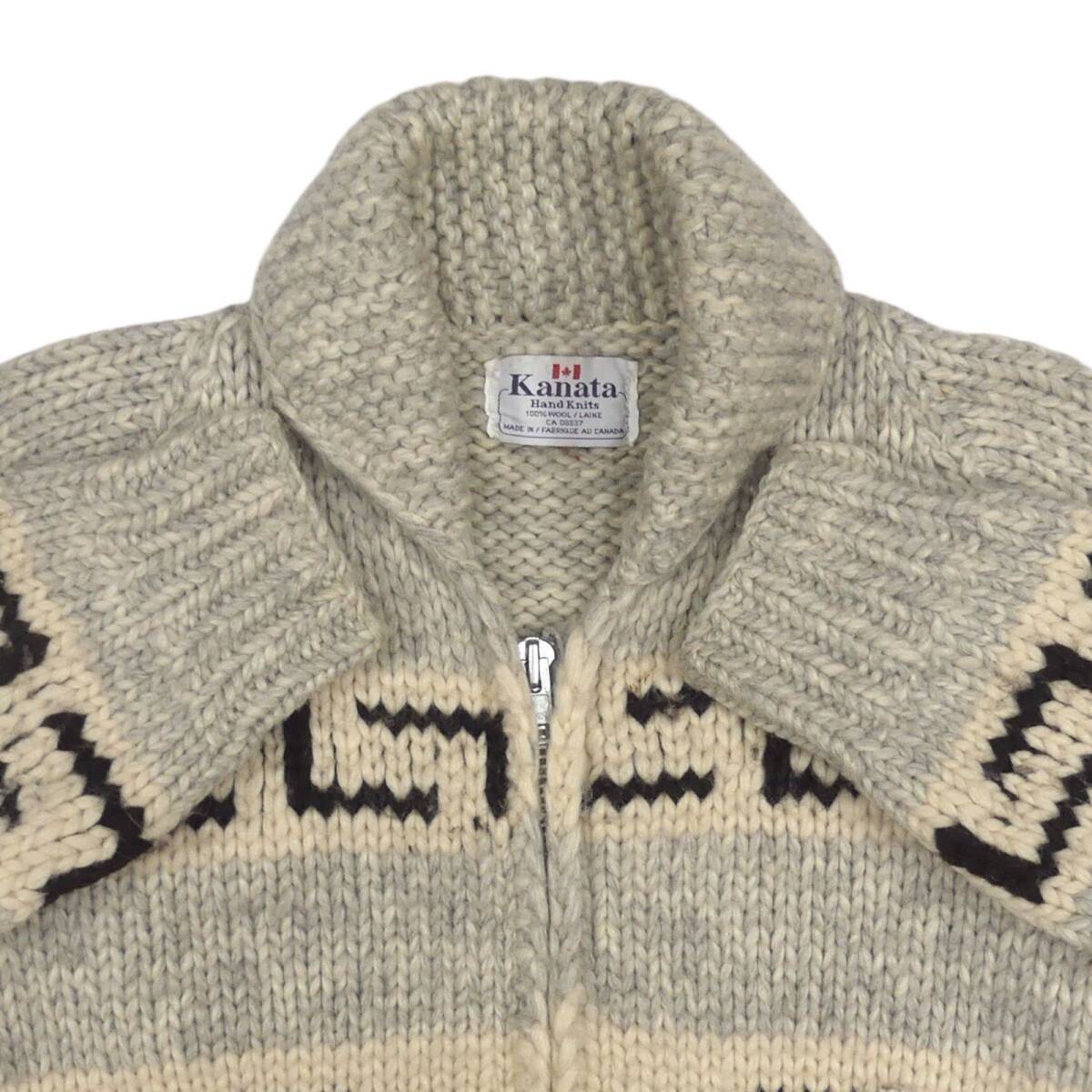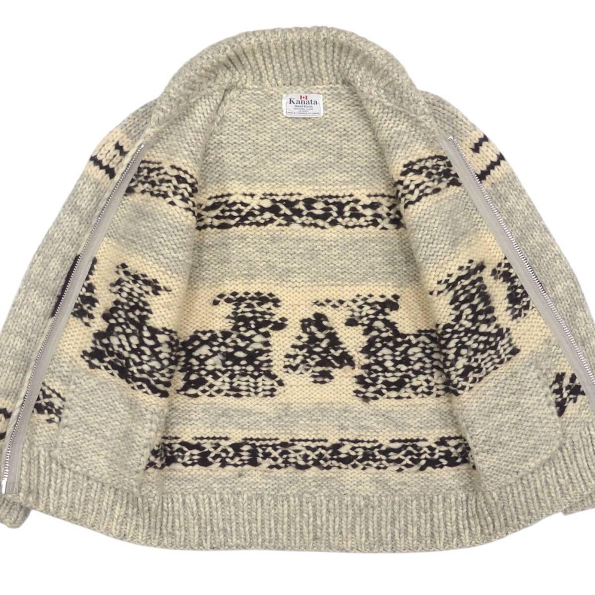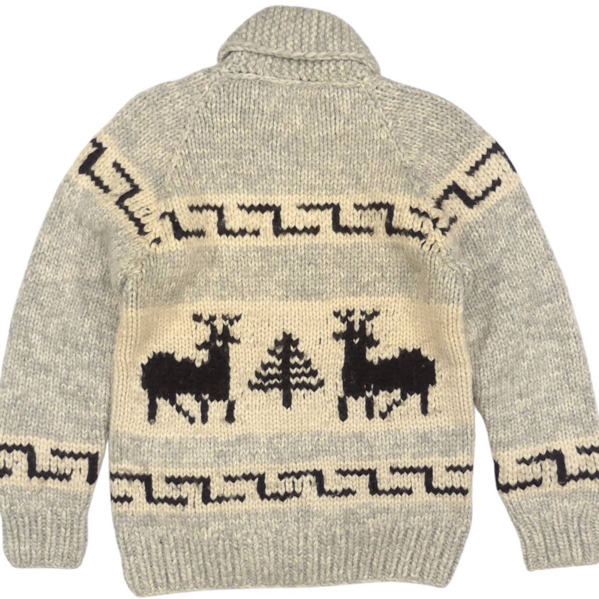 即決★カナダ製 KANATA★メンズ M位 カウチンセーター カナタ 鹿柄 トナカイ グレー ウール ハンドニット セーター ジップアップ