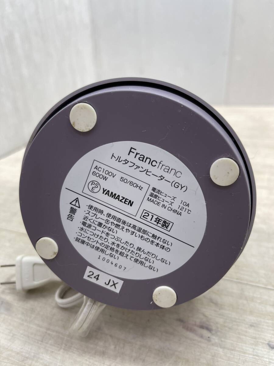 | 送料無料S90308 Francfranc トルタファンヒーター フランフラン グレー YAMAZEN 2021年製 中古品となります。 画像が全てとなります。 新品、未使用品ではございませんので、画像では分かりにくい小キズや汚れ等ある場合がございます。 中古品に付きトラブル防止の為、神経質な方や完璧を求める方は御遠慮下さいますよう、御願い申し上げます。 | ||