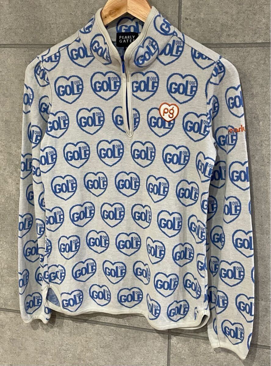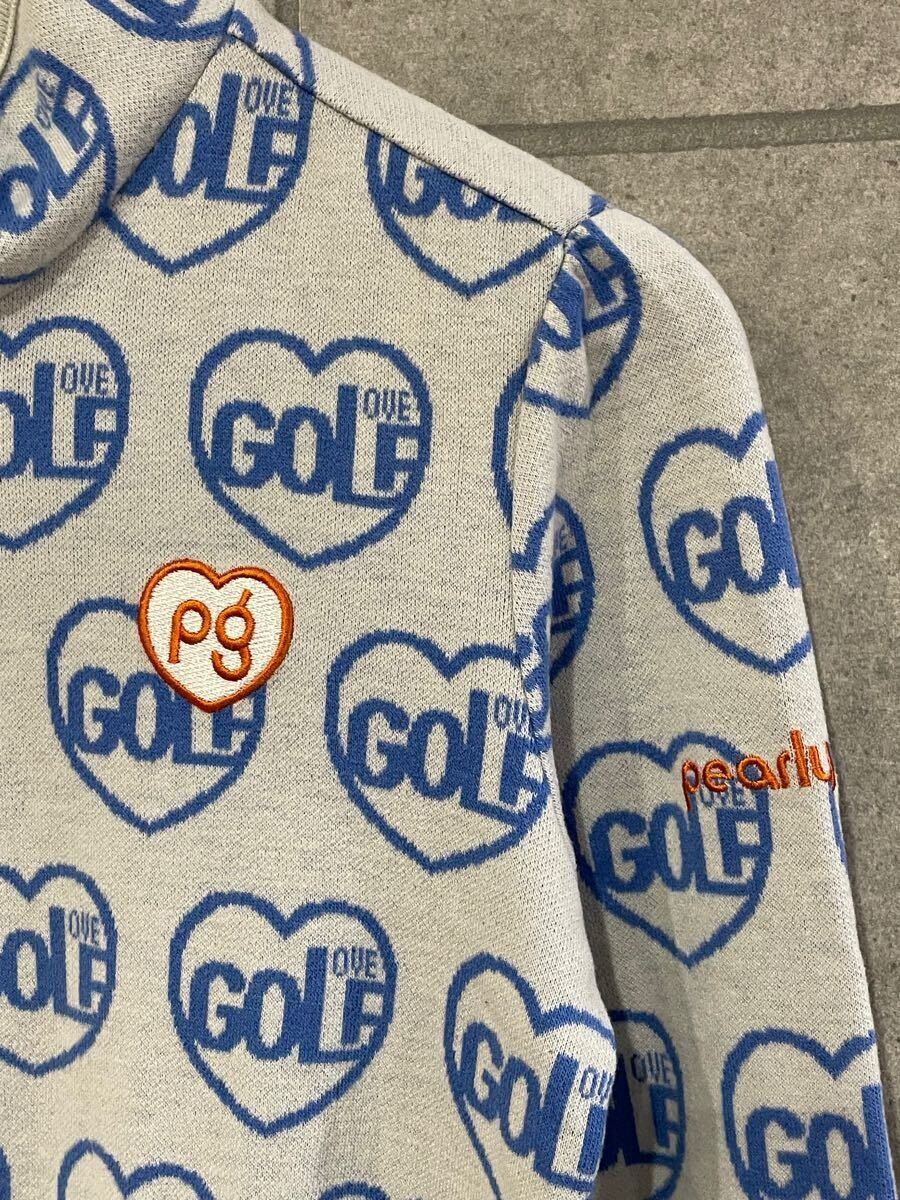 超キュート! PEARLYGATES パーリーゲイツ ハーフジップ ハイネック トップス セーター 総柄 ブルー系 1サイズ ゴルフウェア ○ 新規×