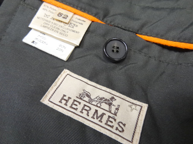 エルメス モスグリーンカラーナイロンステンカラーコート