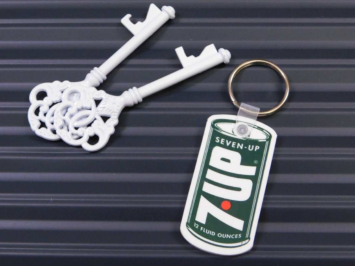 ◆送料\110◆【7UP・セブンアップ】※《缶型・ラバーキーホルダー》 69~75年代ロゴ アメリカン雑貨 キーリング