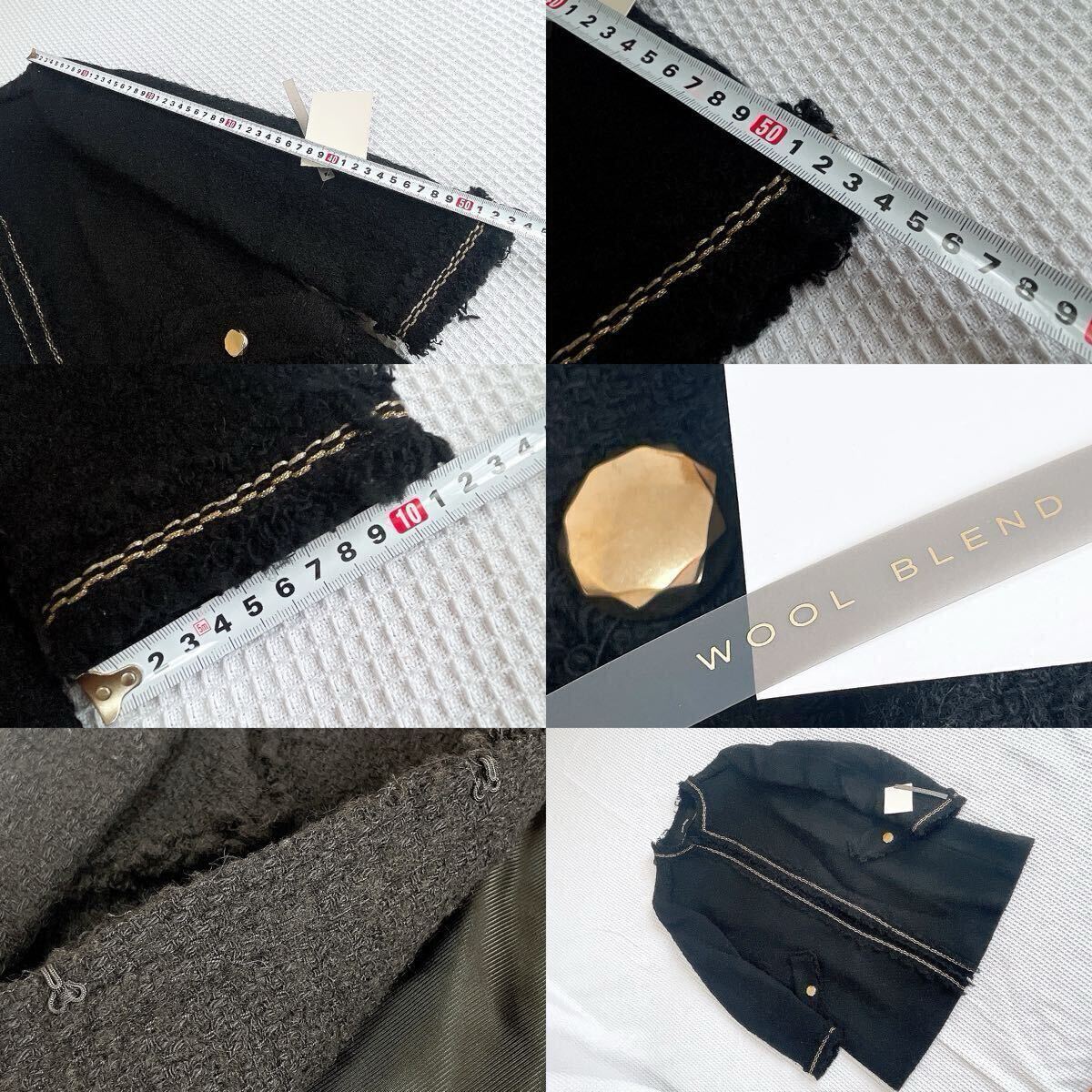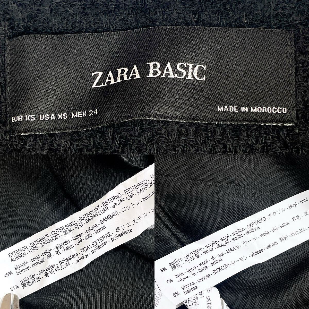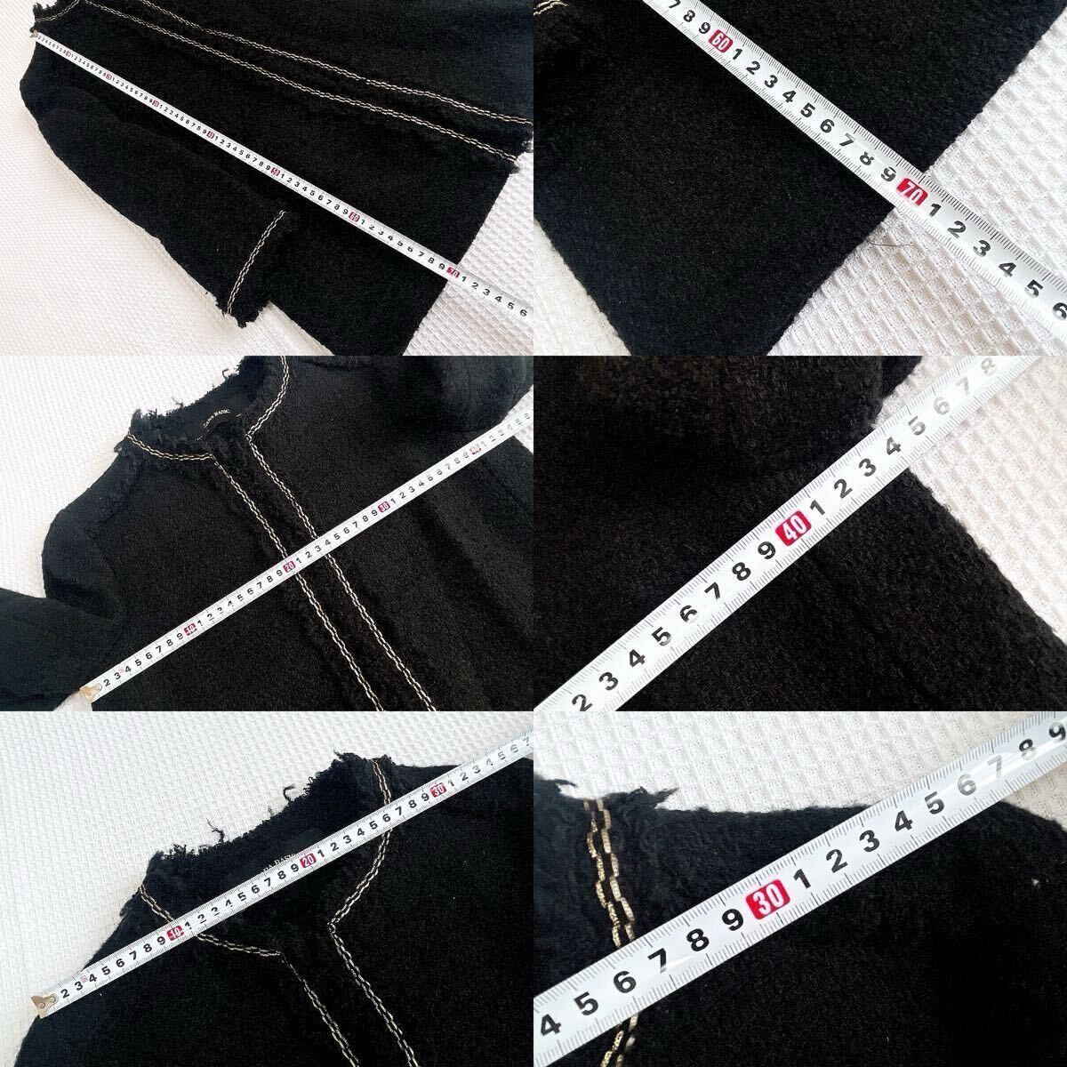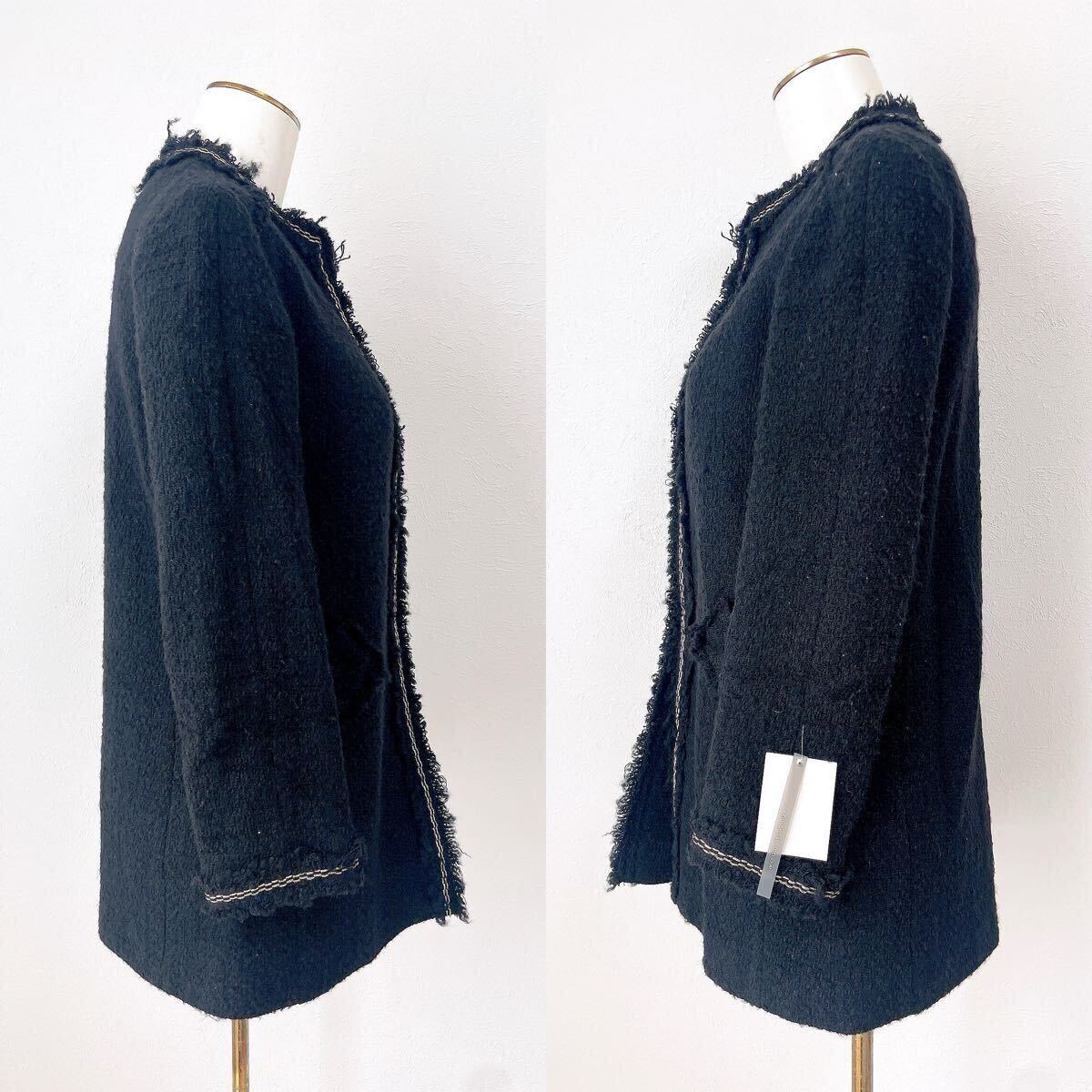 ★新品★ザラZARAツイード長袖ロングジャケット コート アウター ブルゾン黒ブラック ノーカラーSSサイズXSサイズ金ゴールド釦ボタン