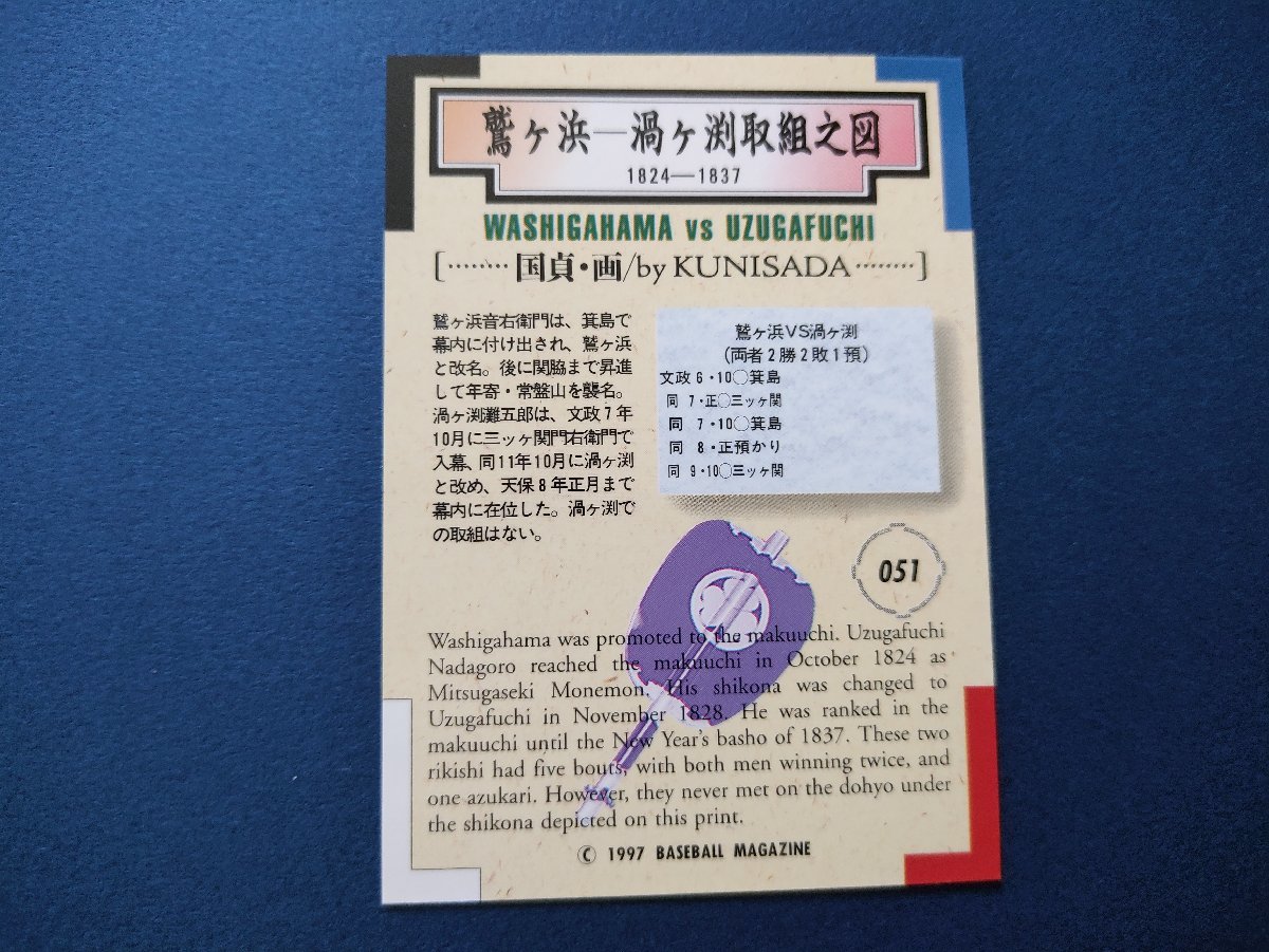 '97BBM 相撲錦絵カード 051 鷲ヶ浜ー渦ヶ渕取組之図