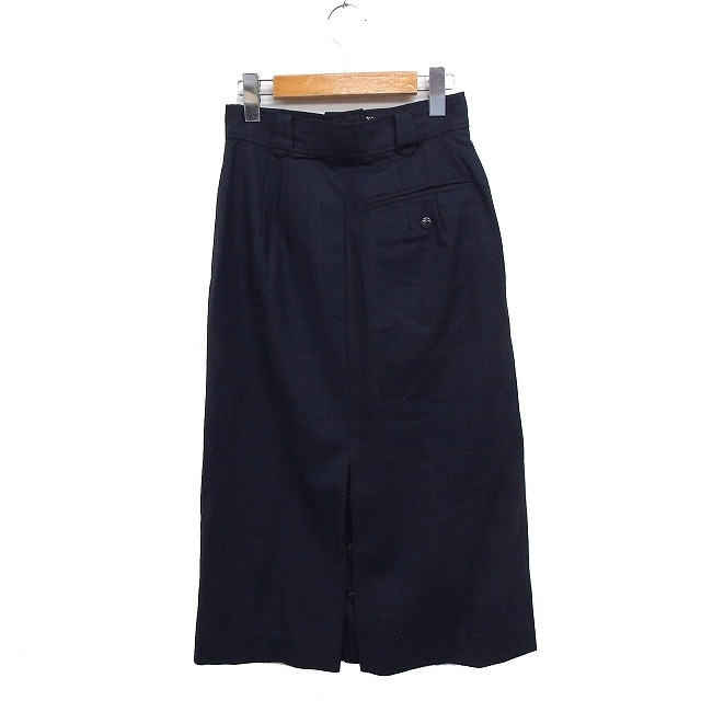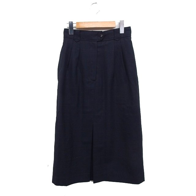 ジュンコシマダ JUNKO SHIMADA MAXFLI チェック タイトスカート ロング ミモレ丈 9 ネイビー 紺 /FT34 レディース