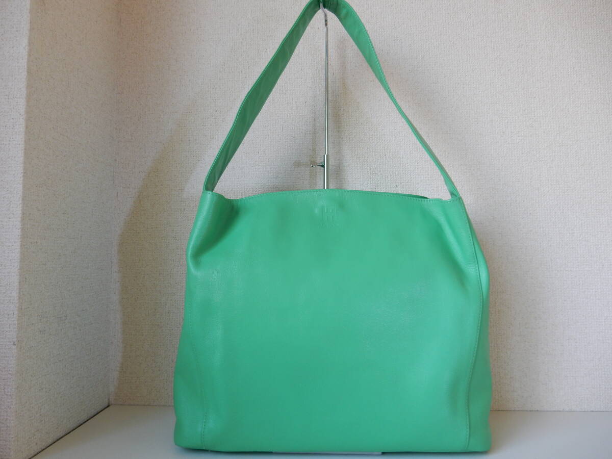本革☆HA LONDON(エイチエーロンドン)☆A4対応☆レザーショルダーバッグ グリーン