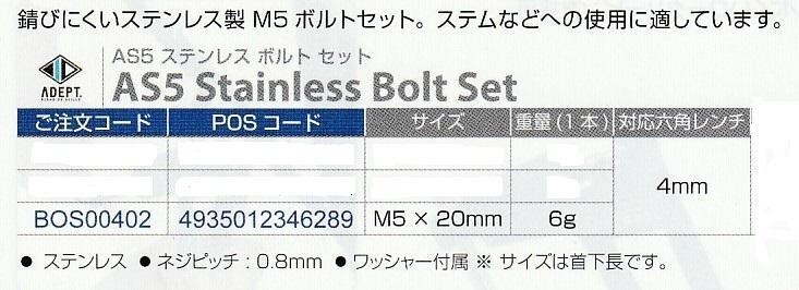 | 商品説明 | ・錆びにくいステンレス製ボルト。ステムなどの使用に適しています。 ・サイズ:M5x20mm。ネジピッチ:0.8mm。重量:6g。ワッシャー付属。 ・複数ご希望のお客様:ヤフオクから複数個数が出品出来ないので、 可能でしたら、当店のヤフーショッピングストアで 購入していただけると助かります。 ヤフーショッピング名 ユメリン沼津 https://store.shopping.yahoo.co.jp/yumerin-numadu/ また、ポイント等の関係でオークションからの 購入希望の時は、ご連絡下さい。 複数のデーターを作成して、出品するようにします。 |