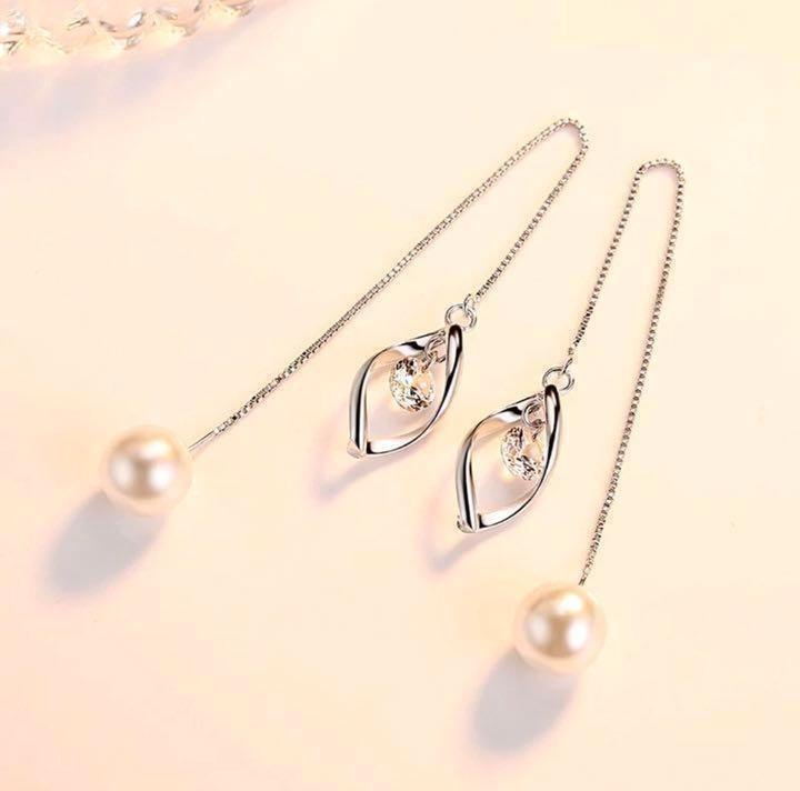 とても美しいエレガントなczダイヤピアスと真珠のピアスです。