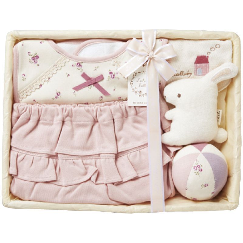 【セット内容】レーススタイ・フリルパンツ・ボール・マスコット・授乳スタイ・竹籠(24.5×32×8cm)×各1