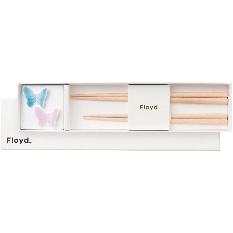 小枝に羽を休める蝶をイメージした二膳セット。縁起の良い八角にけずりだされた箸は、福井県若狭の工房で作られています。