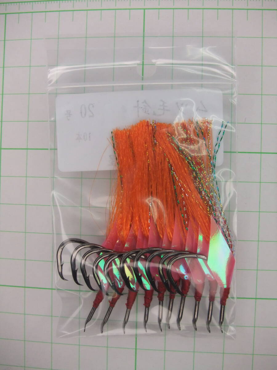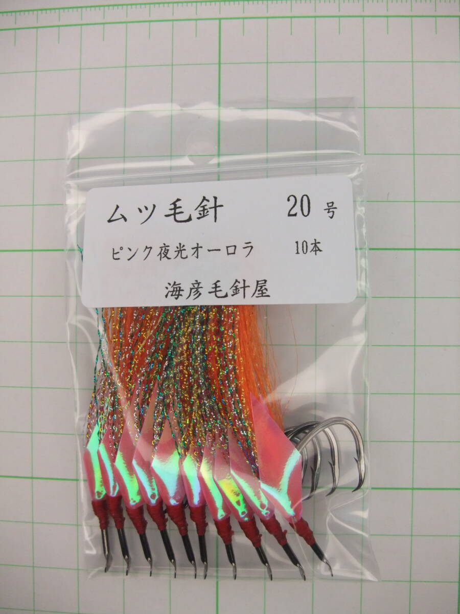 20OPYO ムツ20号毛針 オレンジフラッシャー ピンク夜光オーロラシート付き  10本セット