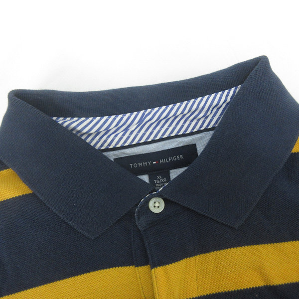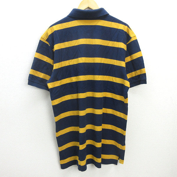 G■トミーヒルフィガー/TOMMYHILFIGER 半袖ポロシャツ/ボーダー【XL】紺黄/men's/91【中古】■