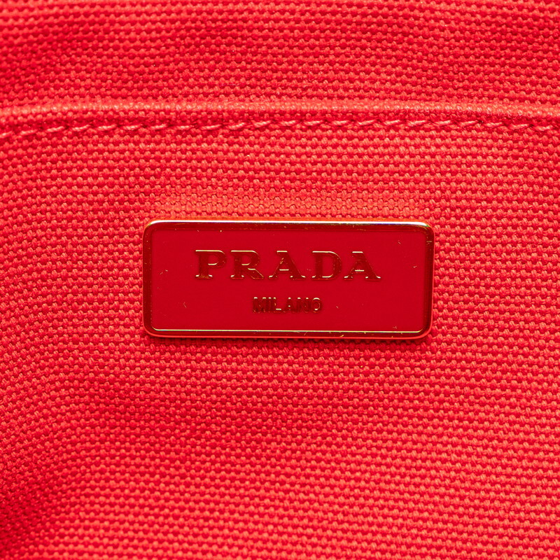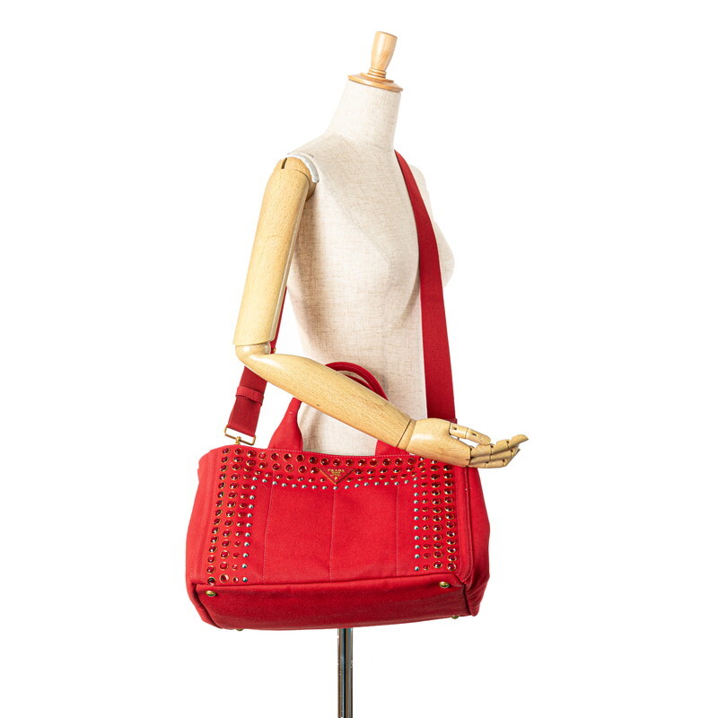 プラダ 三角ロゴプレート カナパM ビジュー ハンドバッグ ショルダーバッグ 2WAY レッド キャンバス レディース PRADA 【中古】