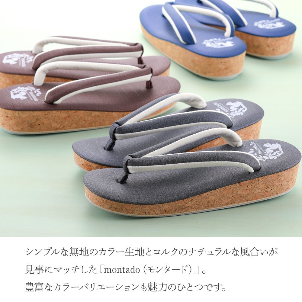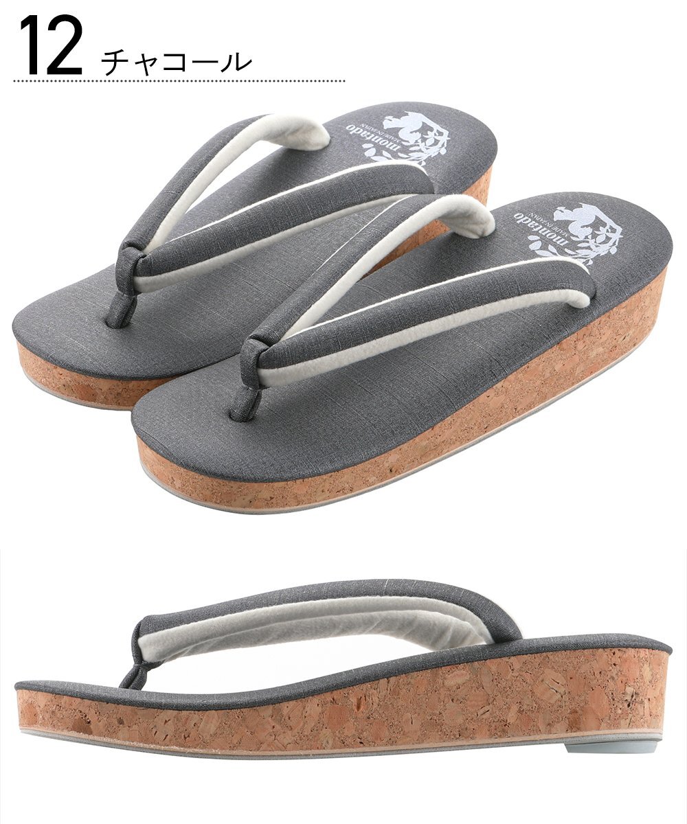 ■日本製■montado モンタード コルク 草履 お洒落 ソフト鼻緒 一枚芯 無地 ku-2 (12チャコール) Lサイズ 【カジュアル 紬 小紋 着物】