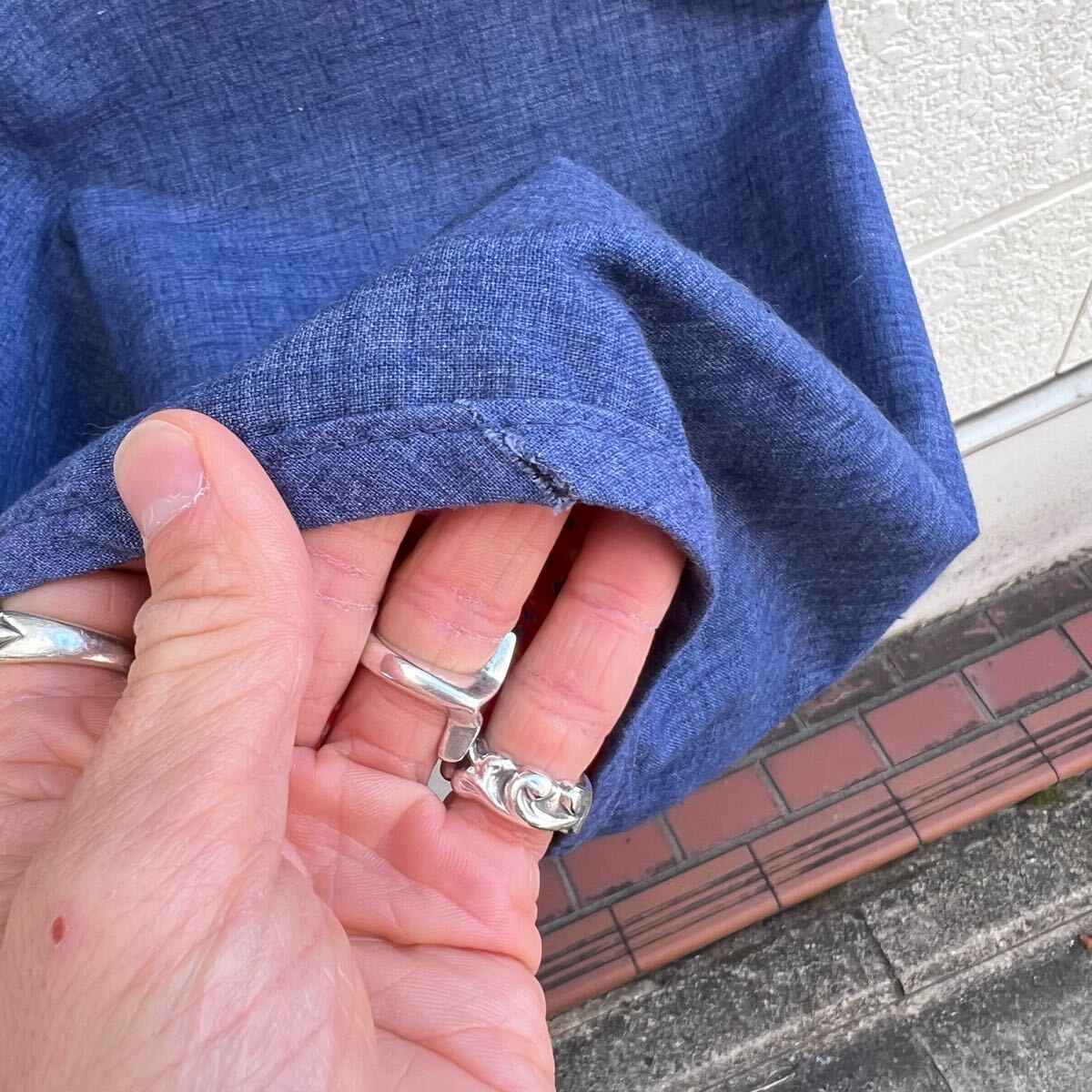 裏に赤ベースの小花柄の生地が貼ってある一着。