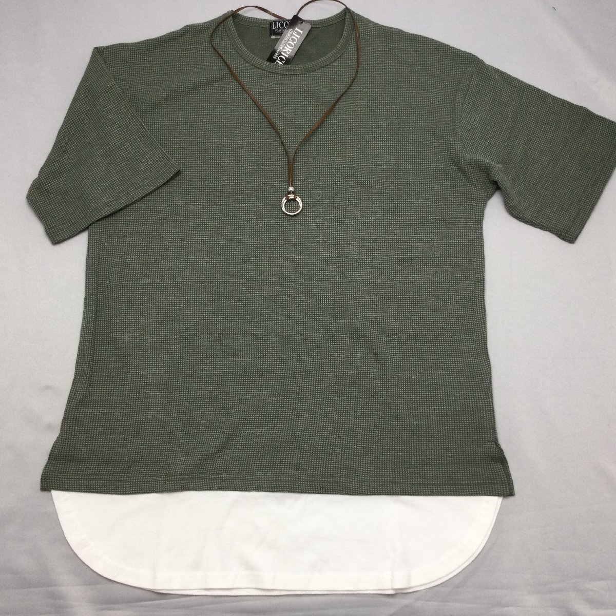 【新品・未使用】 Licorice メンズフェークレイヤード半袖Tシャツ      M        カーキ