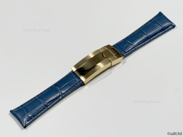 ラグ幅20mm ロレックス対応 腕時計レザーベルト ブルー 腕時計用バンド 腕時計ベルト バックルゴールド サブマリーナ デイトジャスト等に