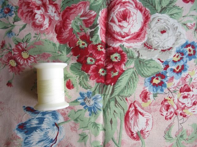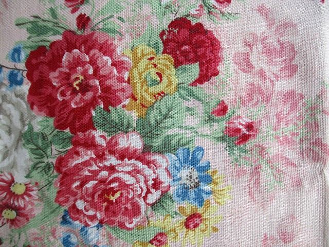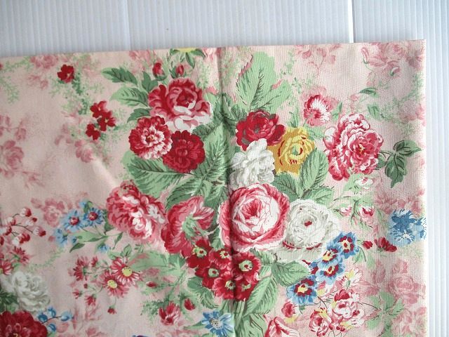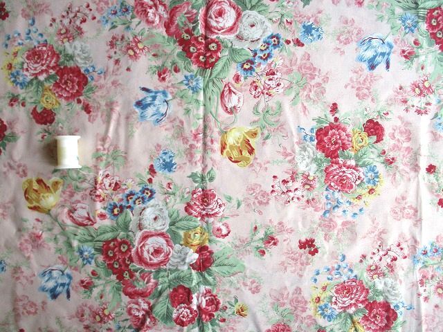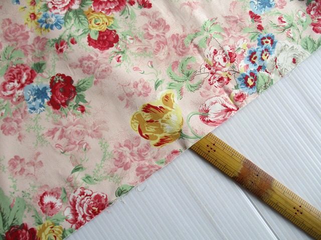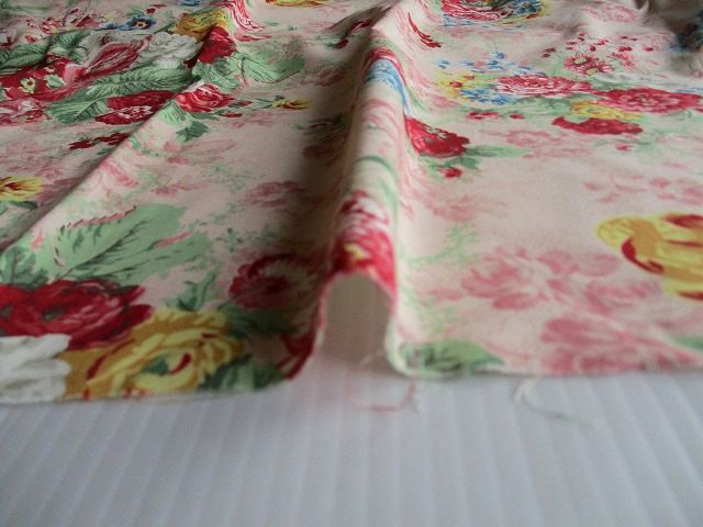 | ◆薄ピンク地赤系花柄プリント生地 * | |||