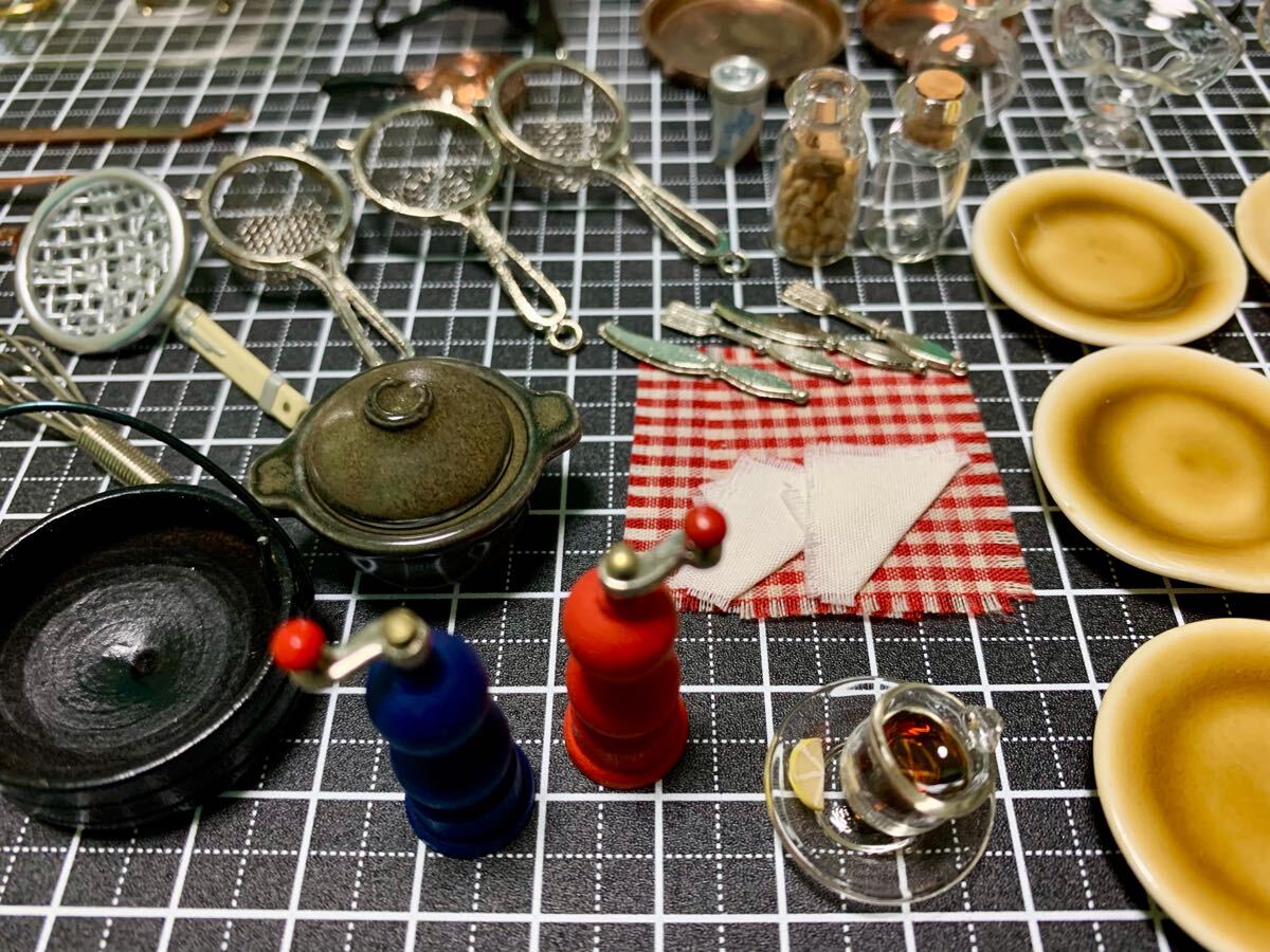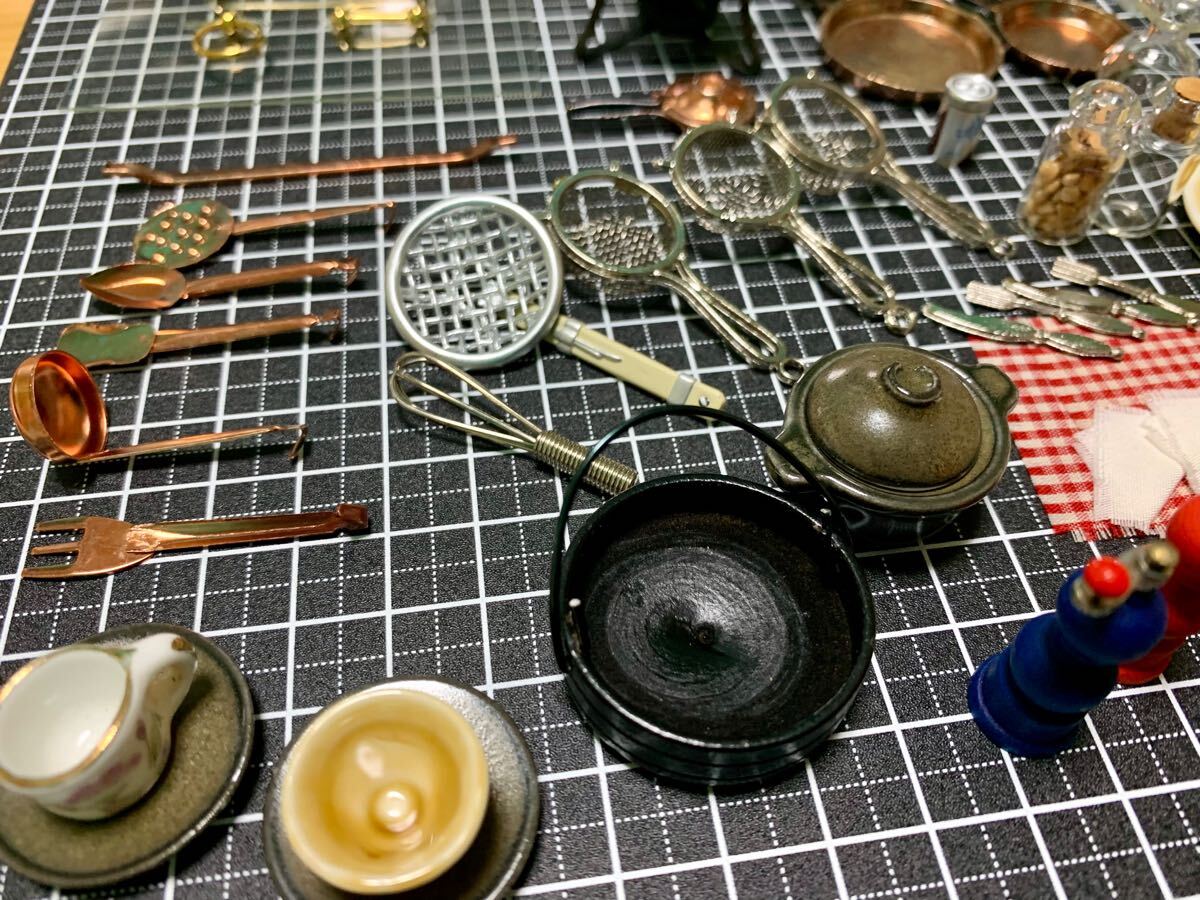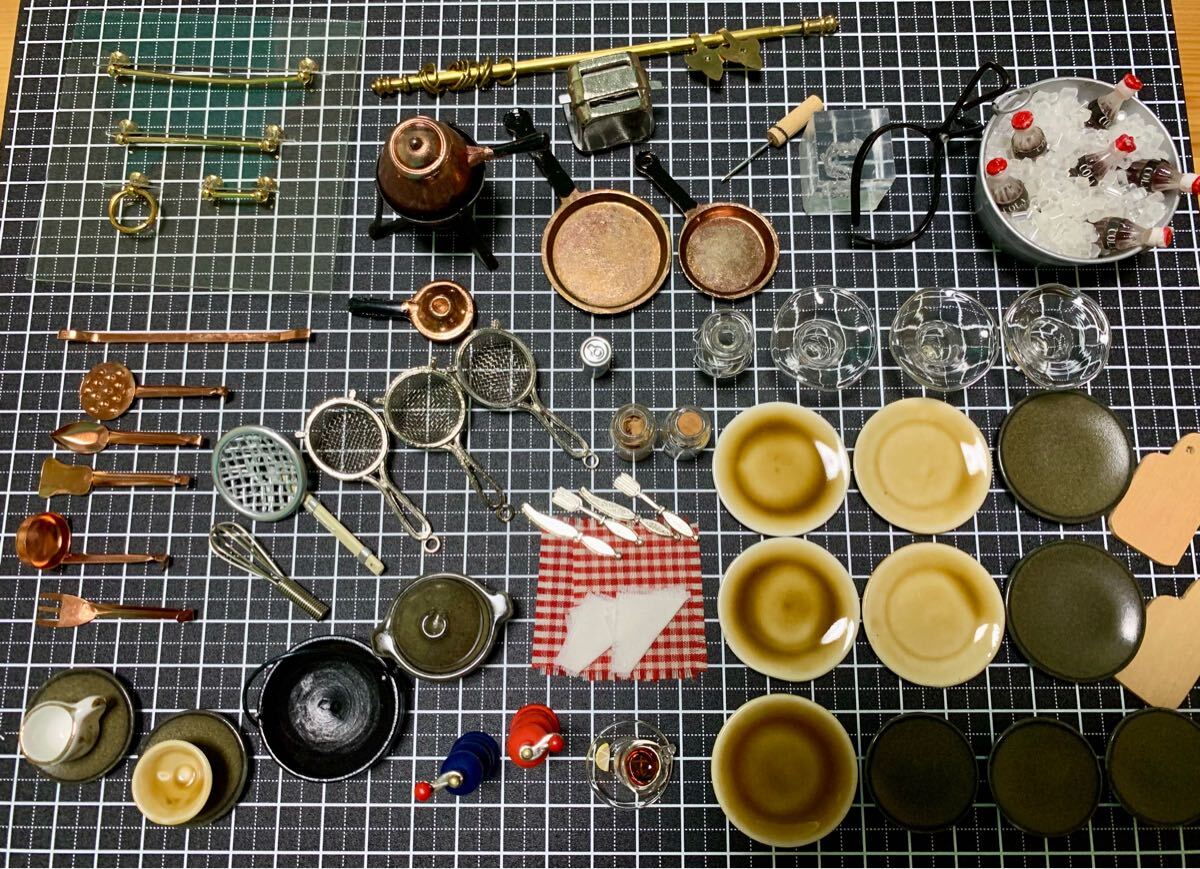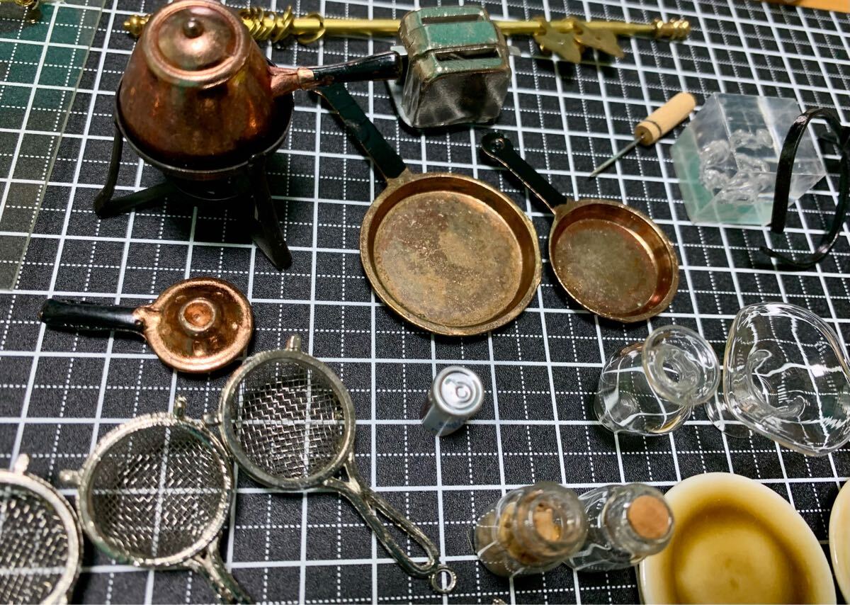 コーラ/パフェグラス/まな板/皿/瓶/氷/カーテンレール/トースター/フライパン/缶ジュース/鍋/食器/土鍋/調理器具/タオル掛け/ザル/泡立て器/ペッパーミル/紅茶/