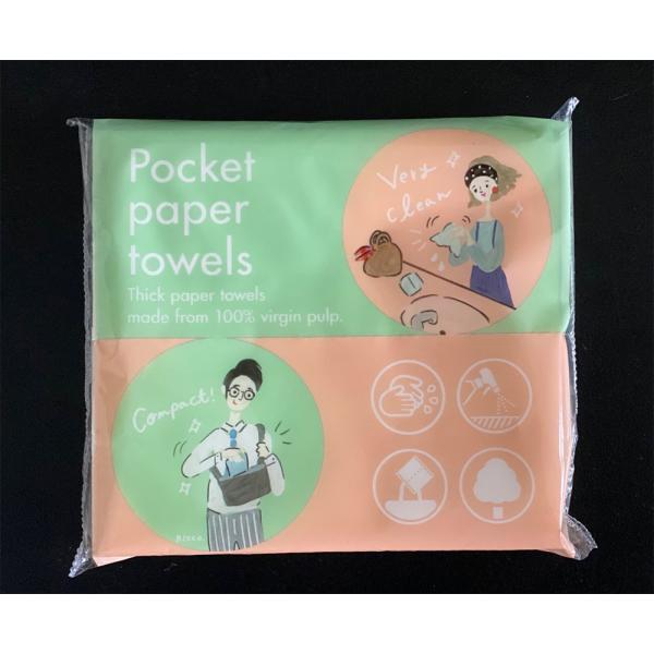 「ポケットペーパータオル」は、”新しい日常”にぴったりの商品。ポケットティシュ感覚で持ち歩けます。外出先での手洗いの際や、除菌後の拭き取り等々使い道はさまざま。是非お試しくださいませ。