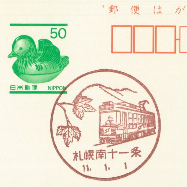 風景印☆初日☆北海道・札幌南十一条・H11.1.1・市電