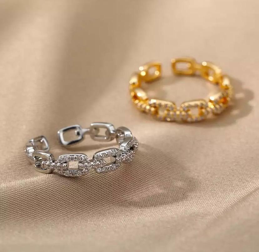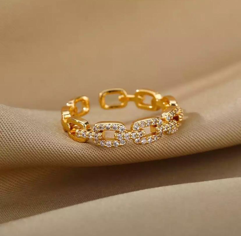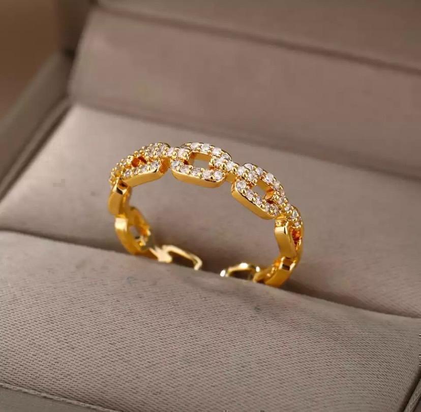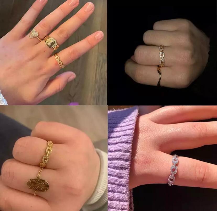 526★新品未使用★レディース ゴールド チェーン リング アクセサリー ジュエリー czダイヤモンド 指輪 シンプル かわいい 女性