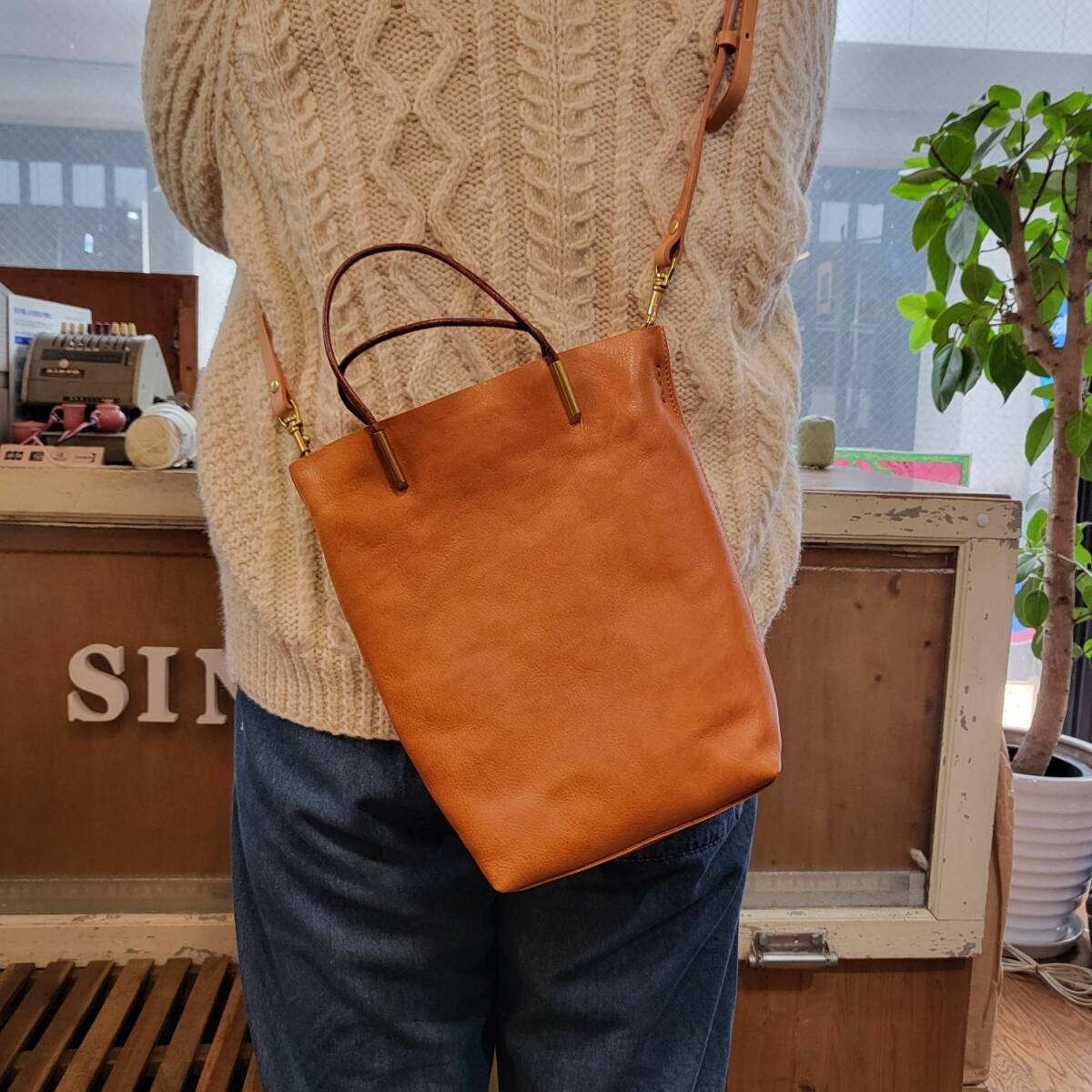 タンニンなめし本革 ショルダーバッグ●BROWN(商品番号41259)