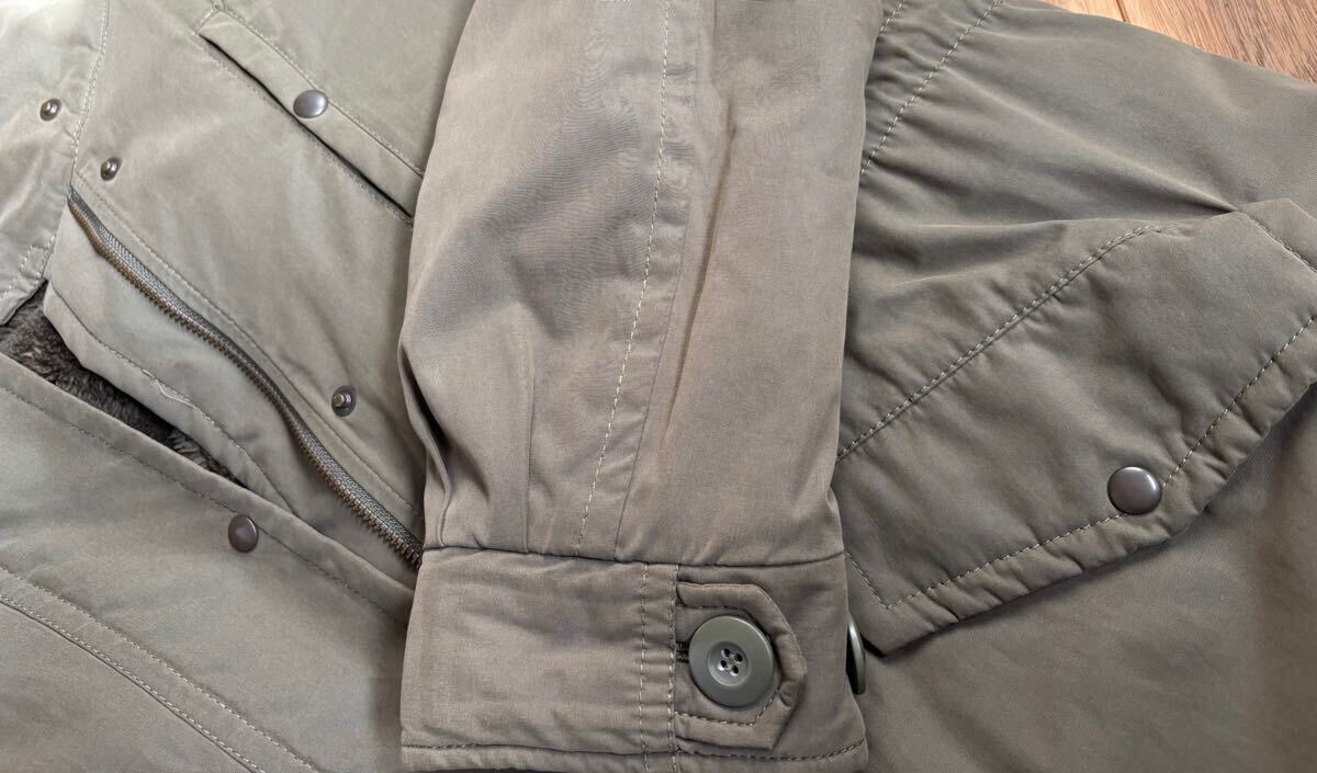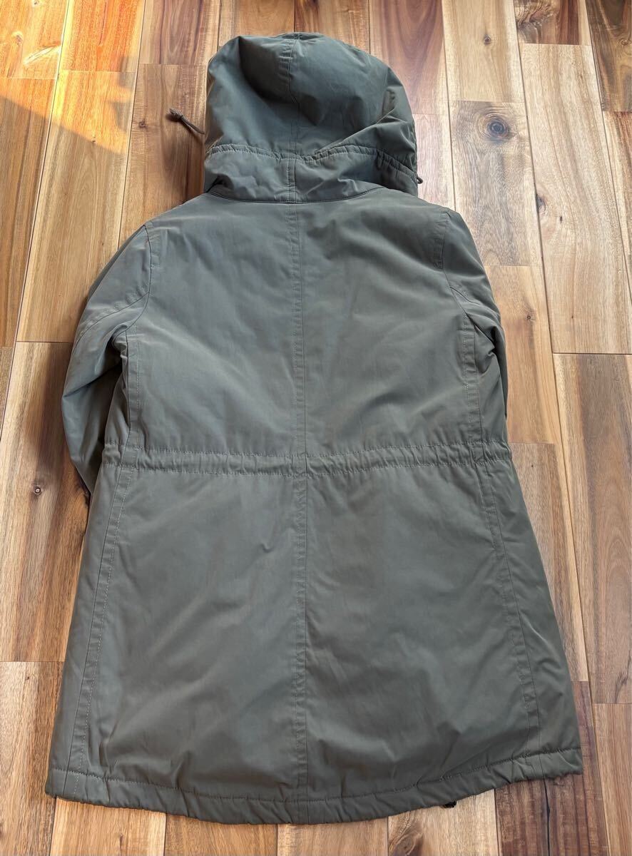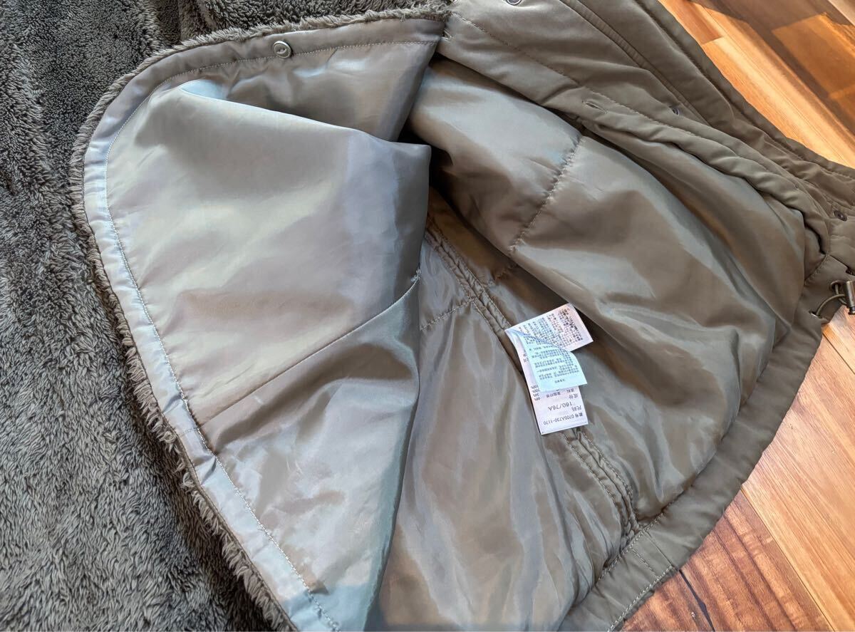 取り外し出来るフリース裏地とボアフード付きのオリーブグリーンモッズコート。