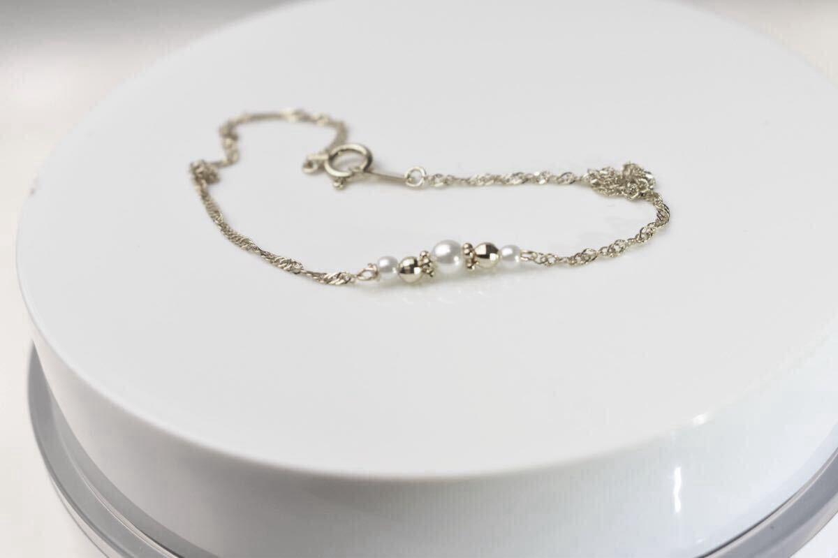 pt850 15cm プラチナ 淡水パール ブレスレット スクリューチェーン0.9mm