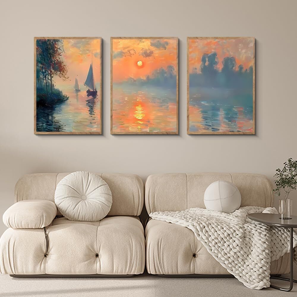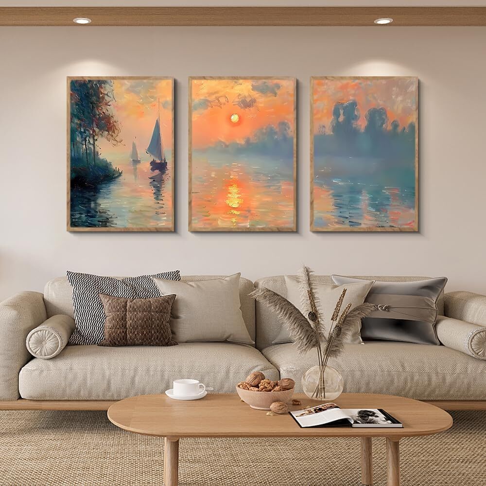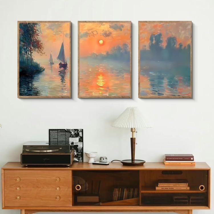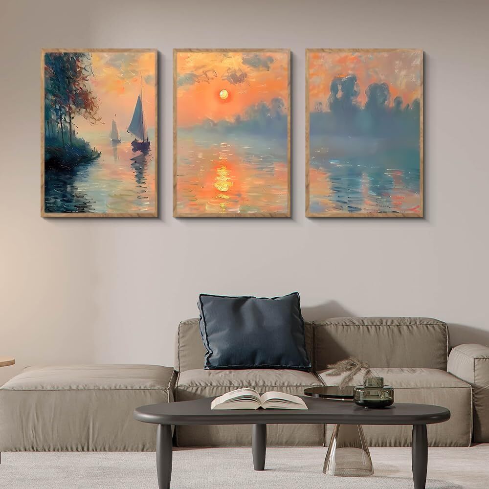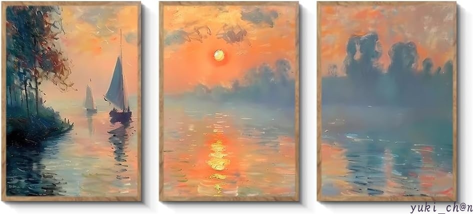 アートパネル アートボード 30×40×3枚 夕日 風景画 ポスター 壁掛け 壁飾り 飾り絵 インテリア モダン 額付き 木枠付きの完成品 木目調