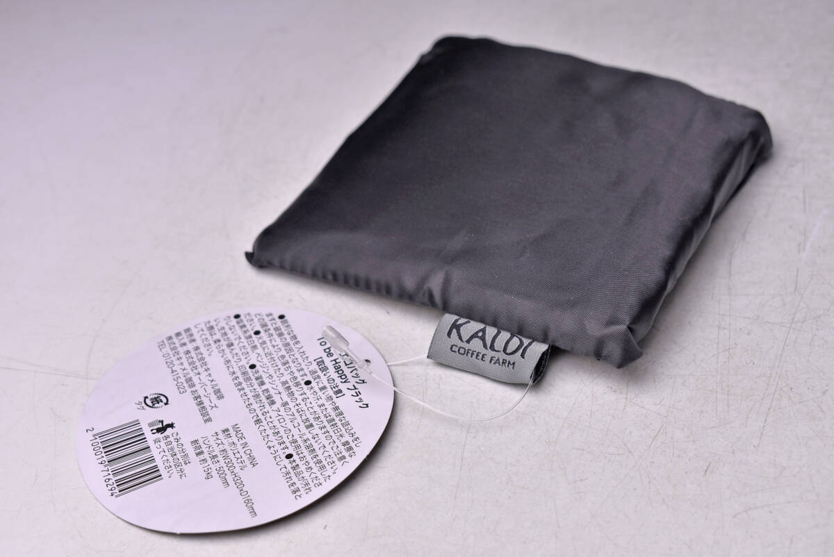 KALDI ★ エコバッグ ★ 手提げ袋 ★ 折りたたみ式 ★ 非売品 ★ 未使用品 ★ ノベルティ ★ 黒 ★ ポリエステル生地 ★(2)