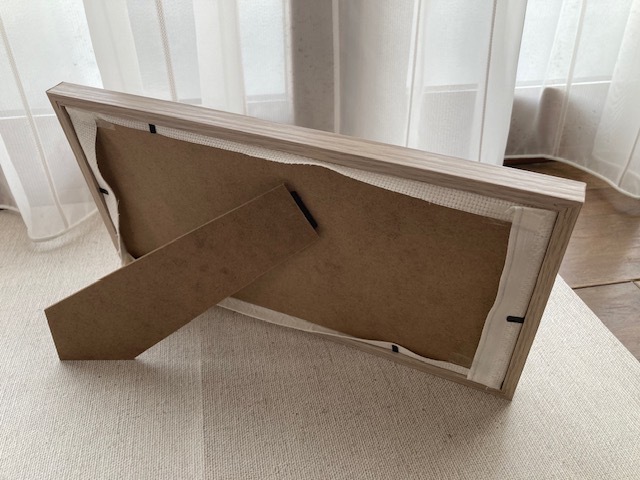 裏面は接着芯を貼り、フレームに入れましたので、すぐに飾っていただけます。