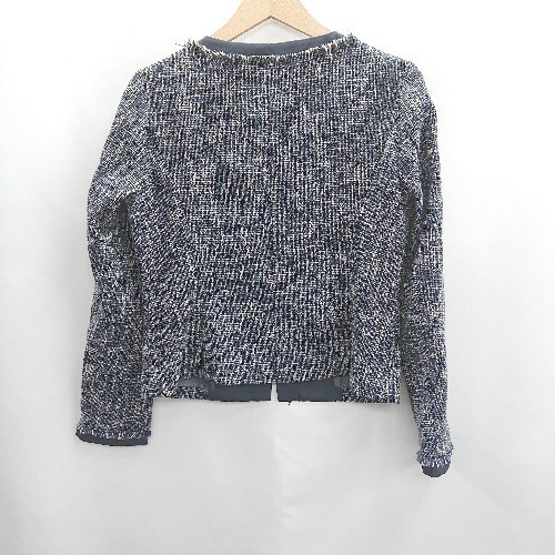 ◇ ⊇ Stola. ストラ ツイード生地 長袖 ノーカラージャケット サイズ40 ネイビー レディース E