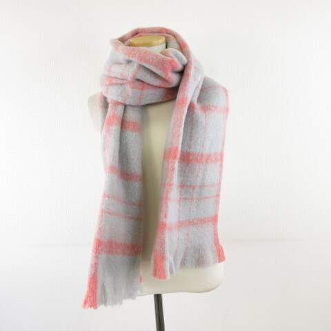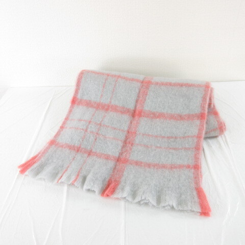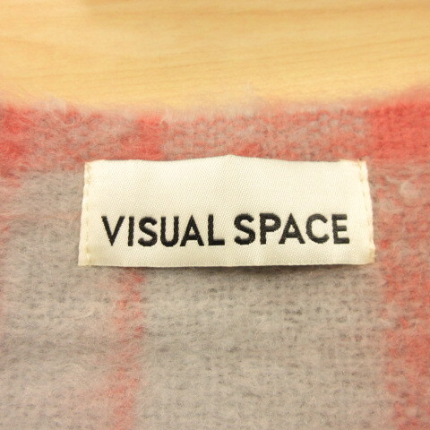 VISUAL SPACE ニットマフラー チェック グレー ピンク *A551 レディース