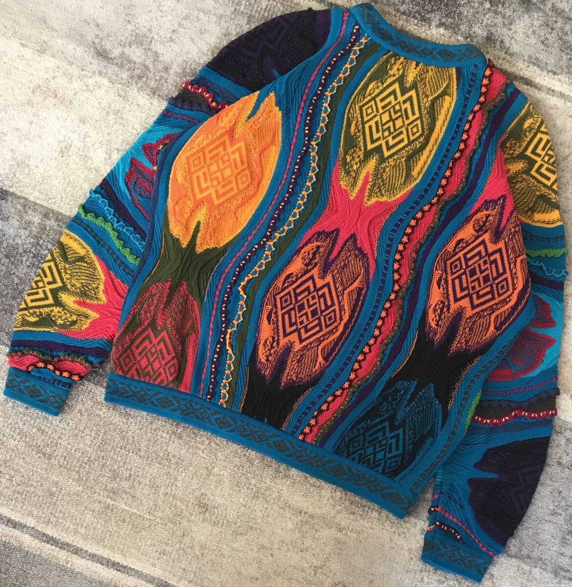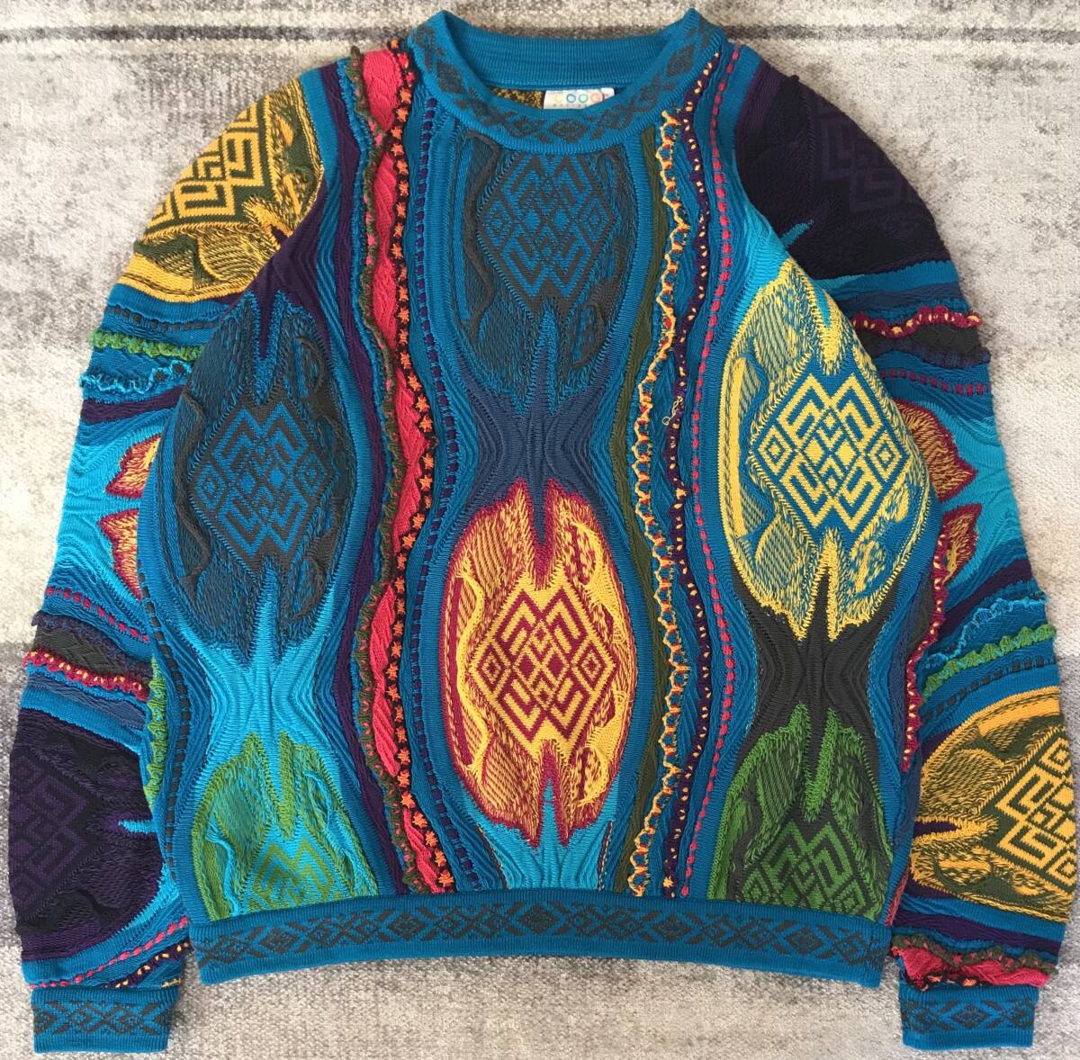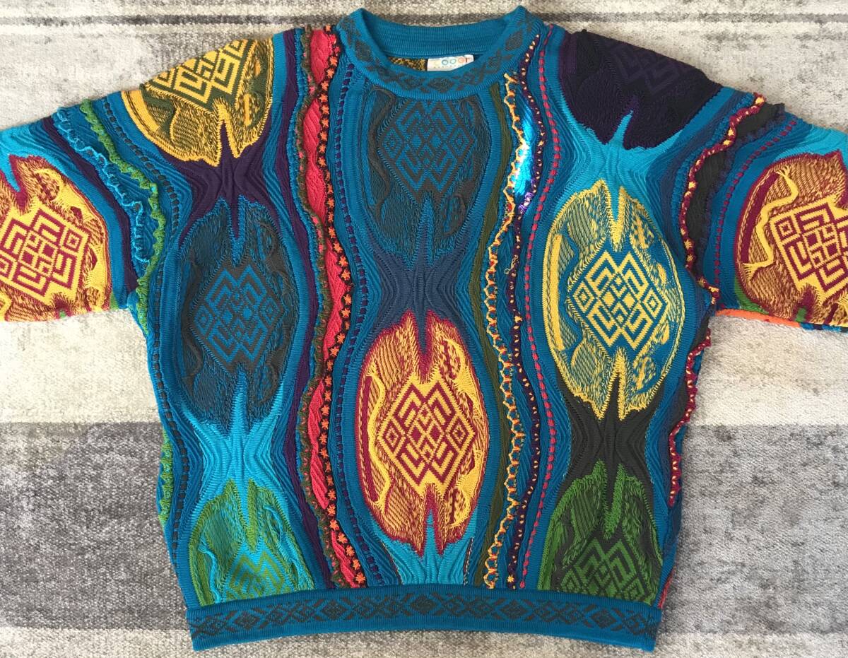 強烈な個性 異次元のデザイン 芸術 90's vintage ★ COOGI AUSTRALIA ★ クージー オーストラリア 3D 立体 個性派 ド派手 コットン ニット セーター M です。