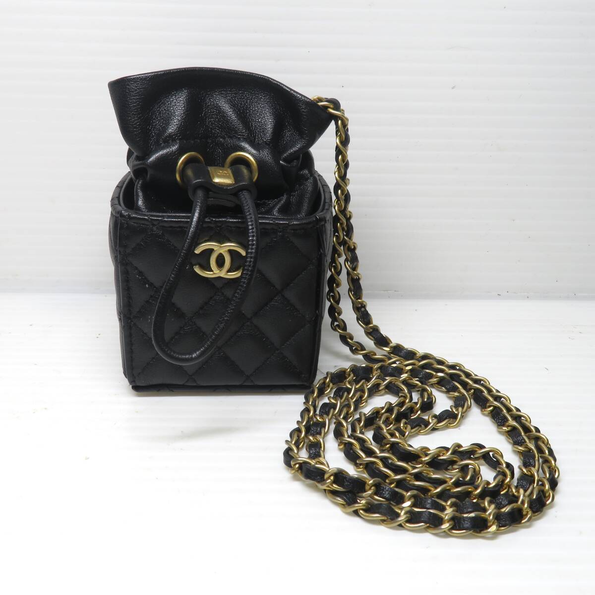 シャネル マトラッセ ミニチェーンショルダーバッグ 巾着型 ブラック ココマーク