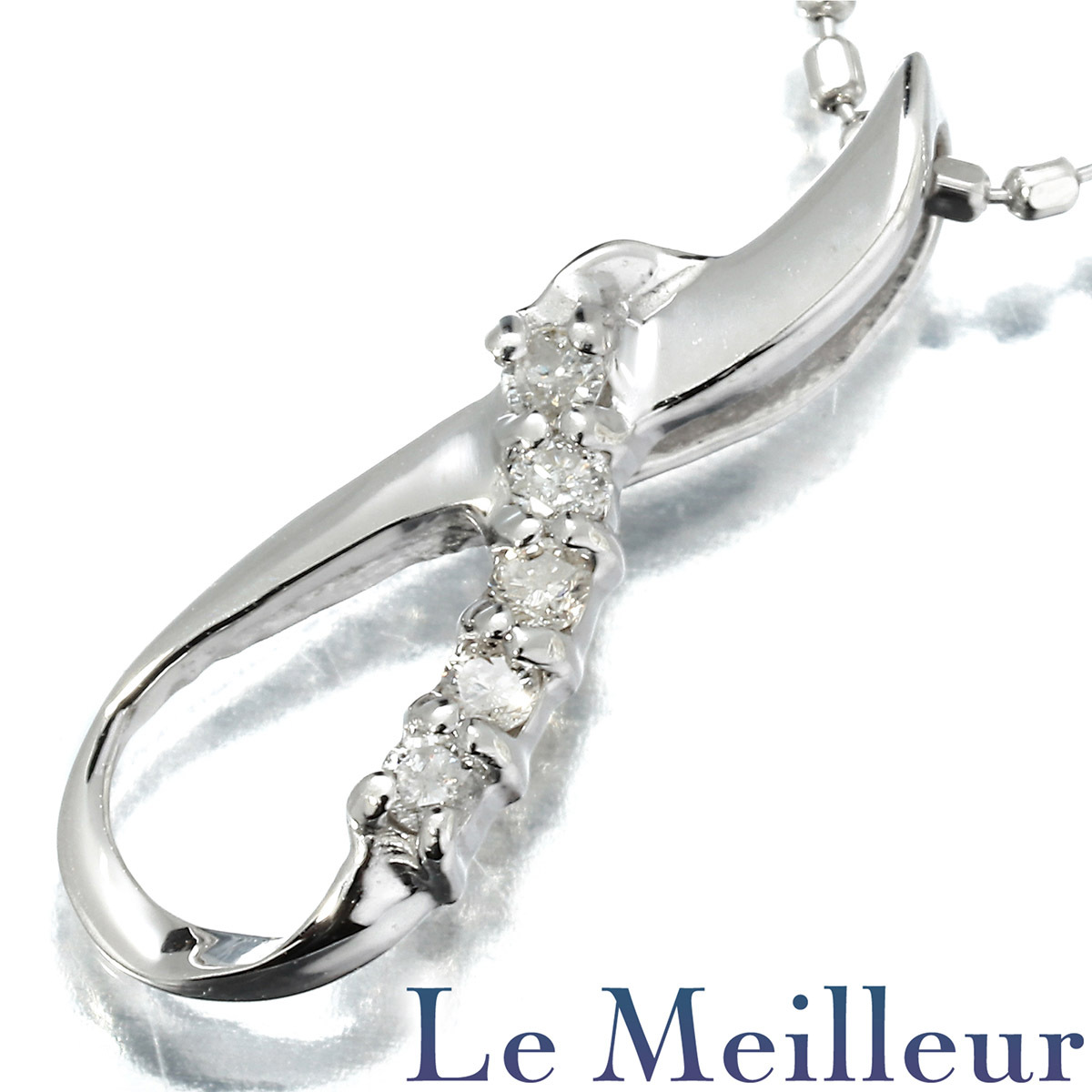 メレダイヤ インフィニティ 無限大 デイリー 普段使い キラキラ お仕事 オフィス WG 4月 誕生石 ボールチェーン 引き輪 ダイア 18金 20代 30代 40代 50代 60代 70代 USED ユーズド 中古 リユース ネックレス LEI7985