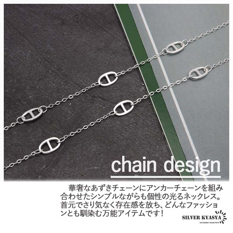 シルバー925 マンテル チェーン ネックレス 細身 レディース あずきチェーン アンカーチェーン 金属アレルギー 対応 ホワイト