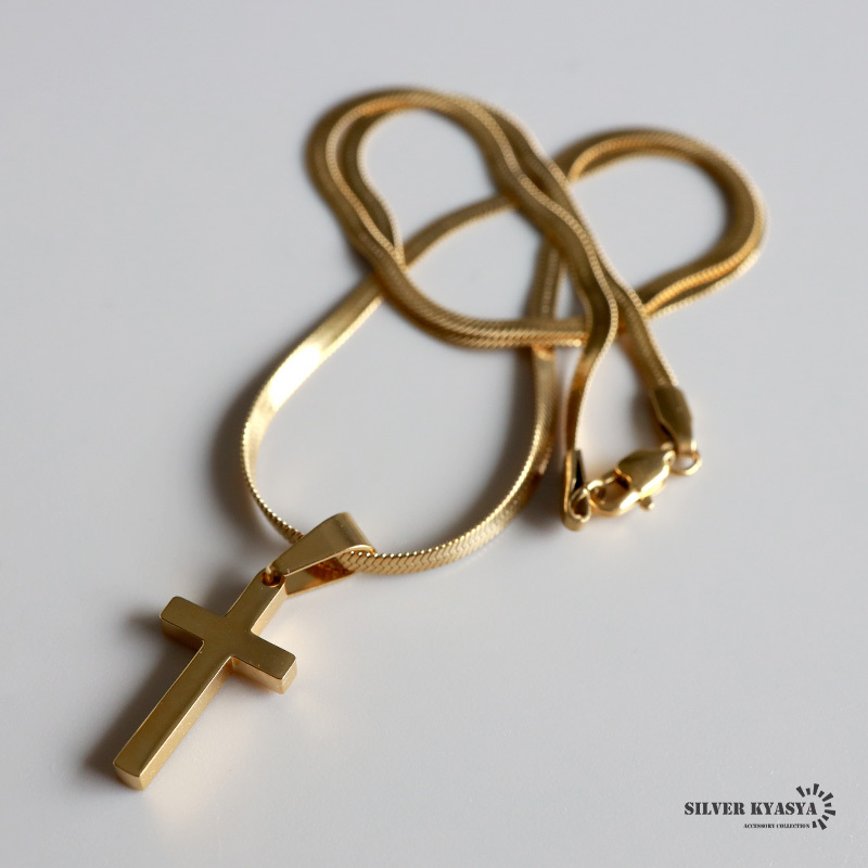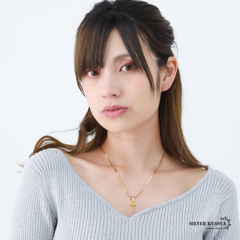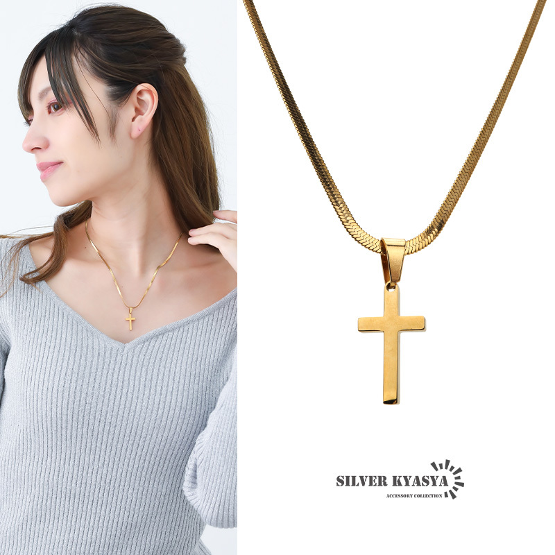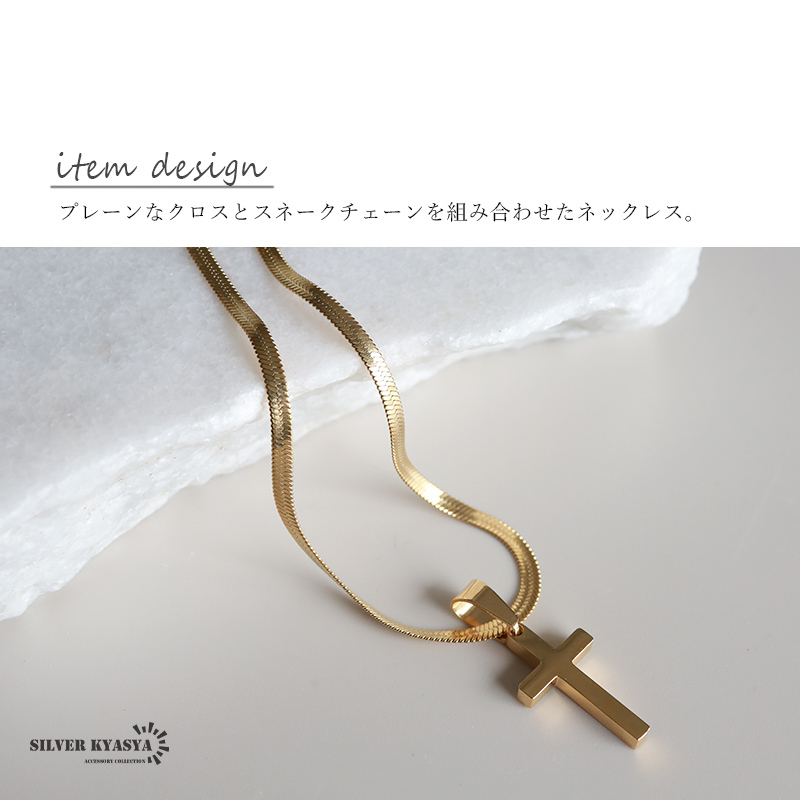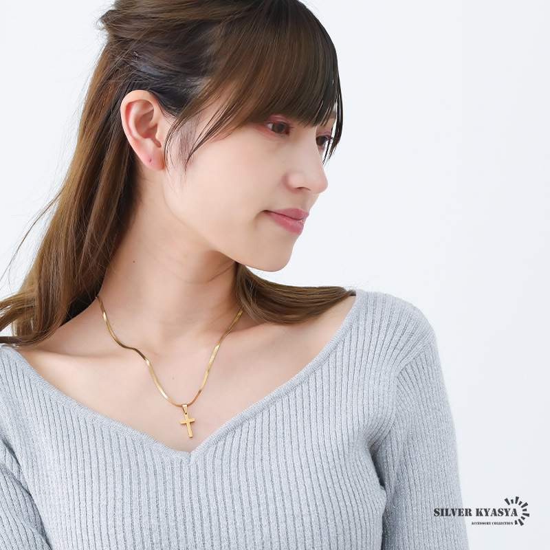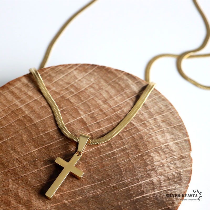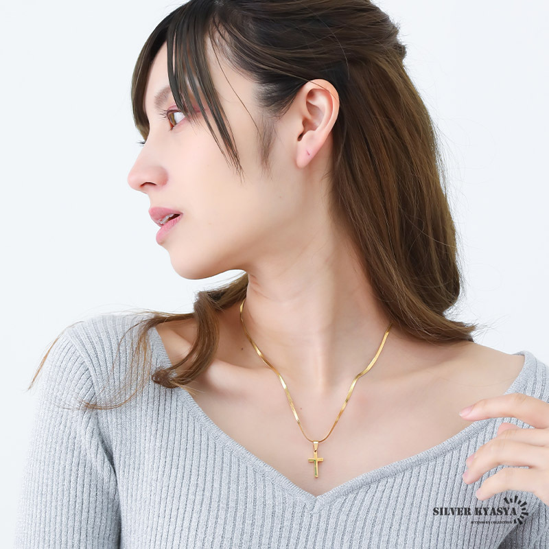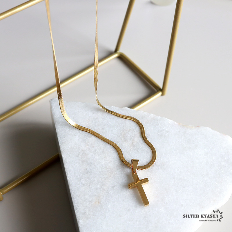 シンプルなクロスとスネークチェーンを組み合わせた普段使いにおすすめなアイテム。