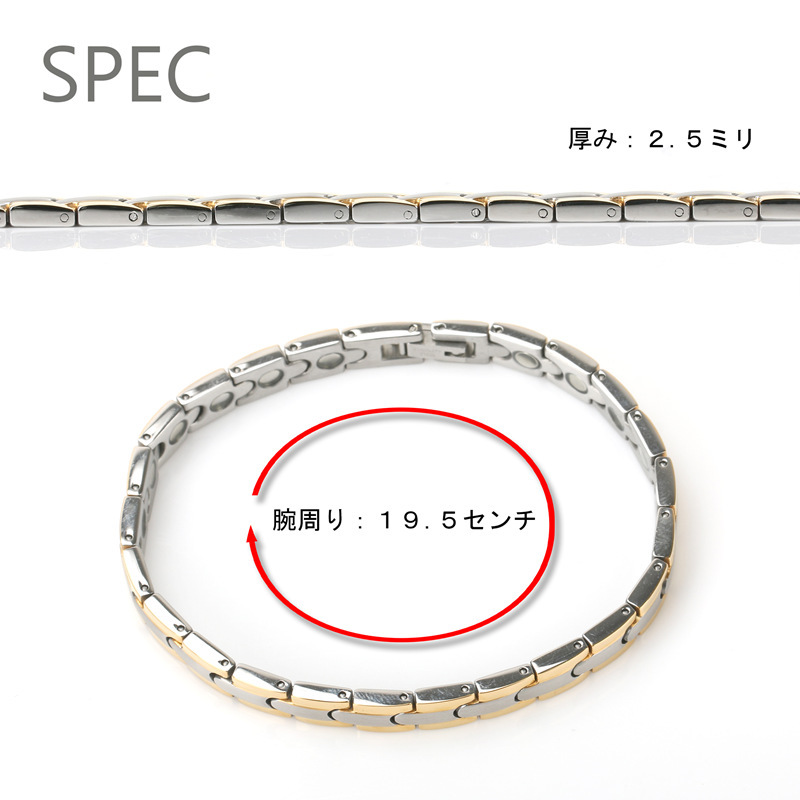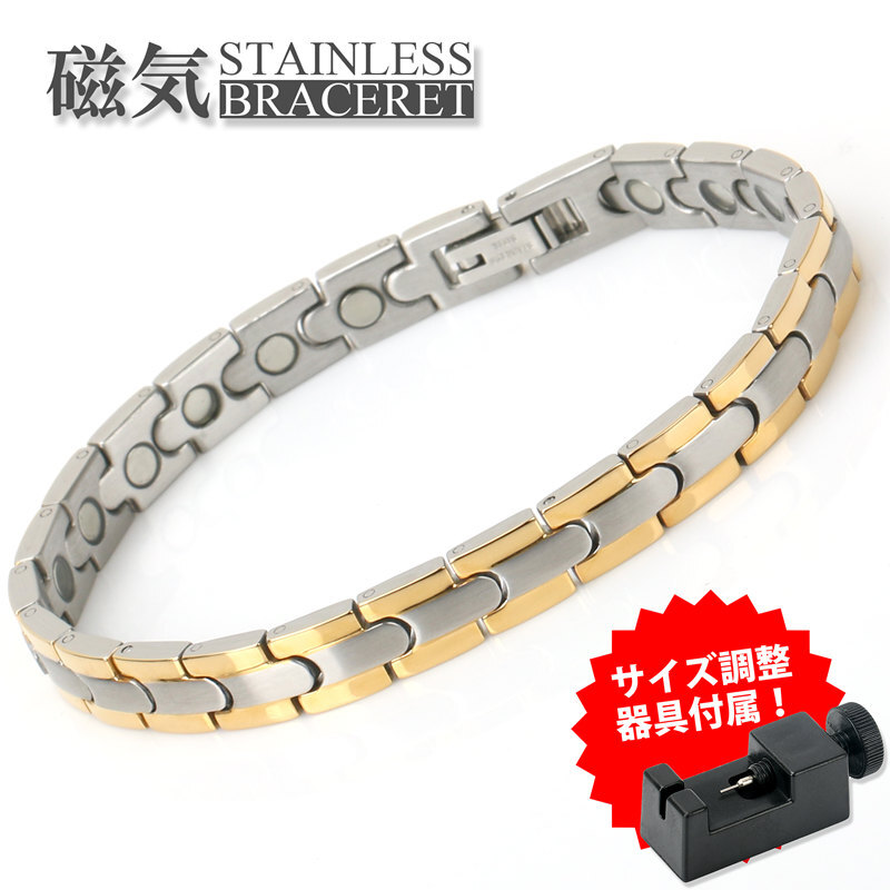 磁気ブレスレット メンズ ステンレス ゴールド 金 ブレスレット シルバー 金属アレルギー対応 磁力 磁石 316L 調整器具付属