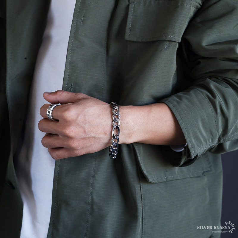 喜平 フィガロチェーンブレスレット シンプル メンズ ブレスレット シルバー 11mm つけっぱなしOK
