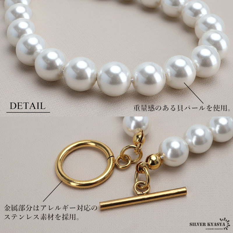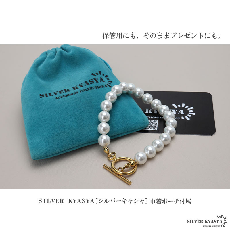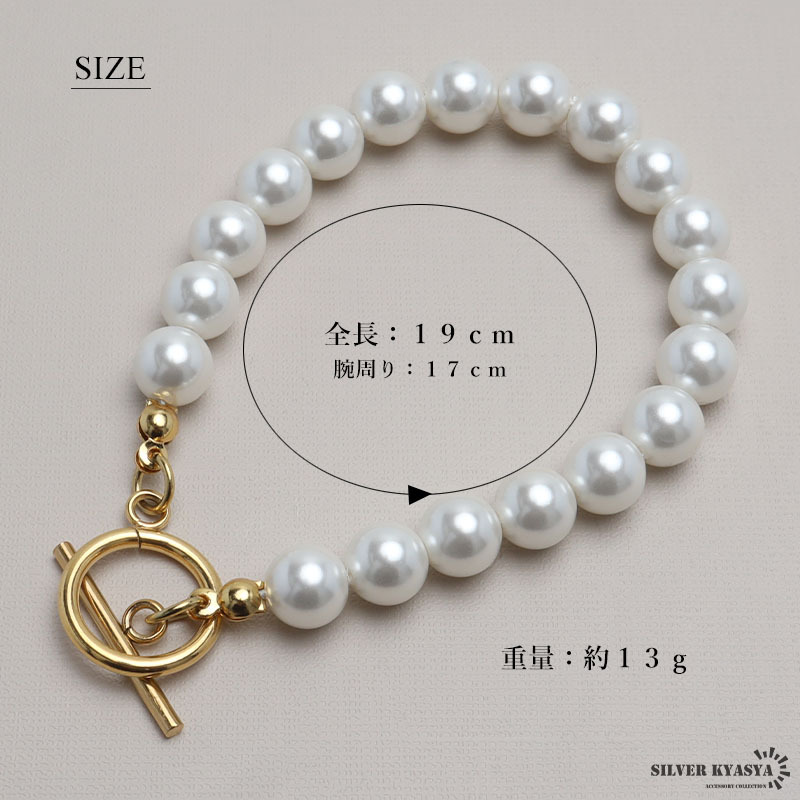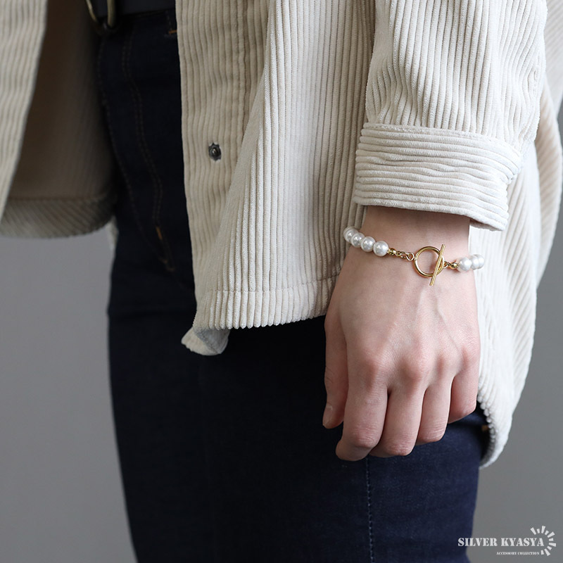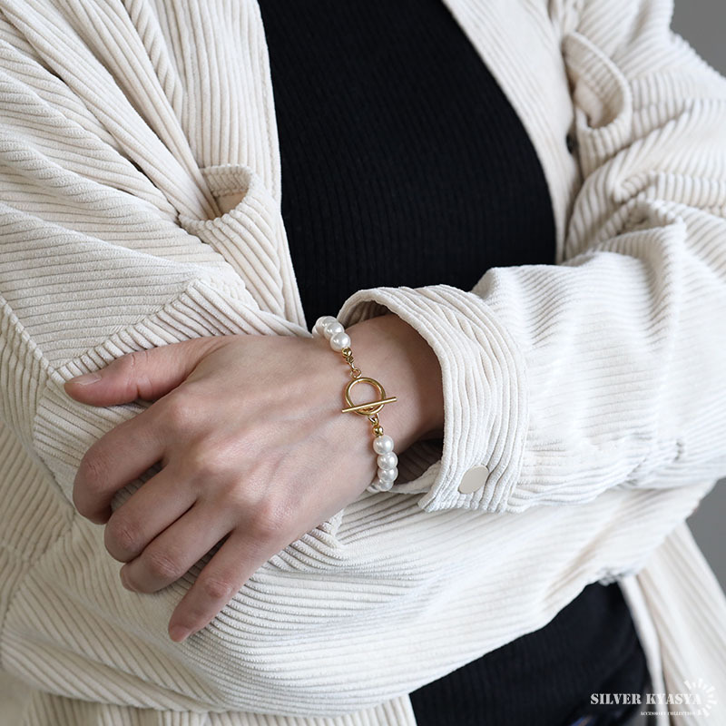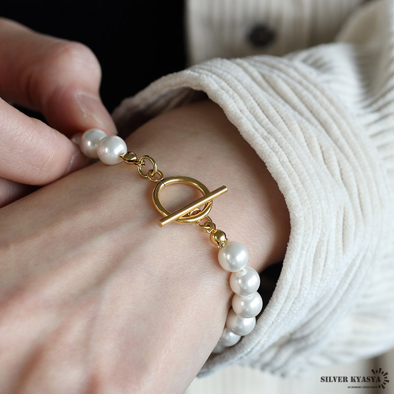 パールブレスレット マンテル ステンレス製で安心 マンテルブレスレット パール 幅8mm ゴールド 18KGP gold